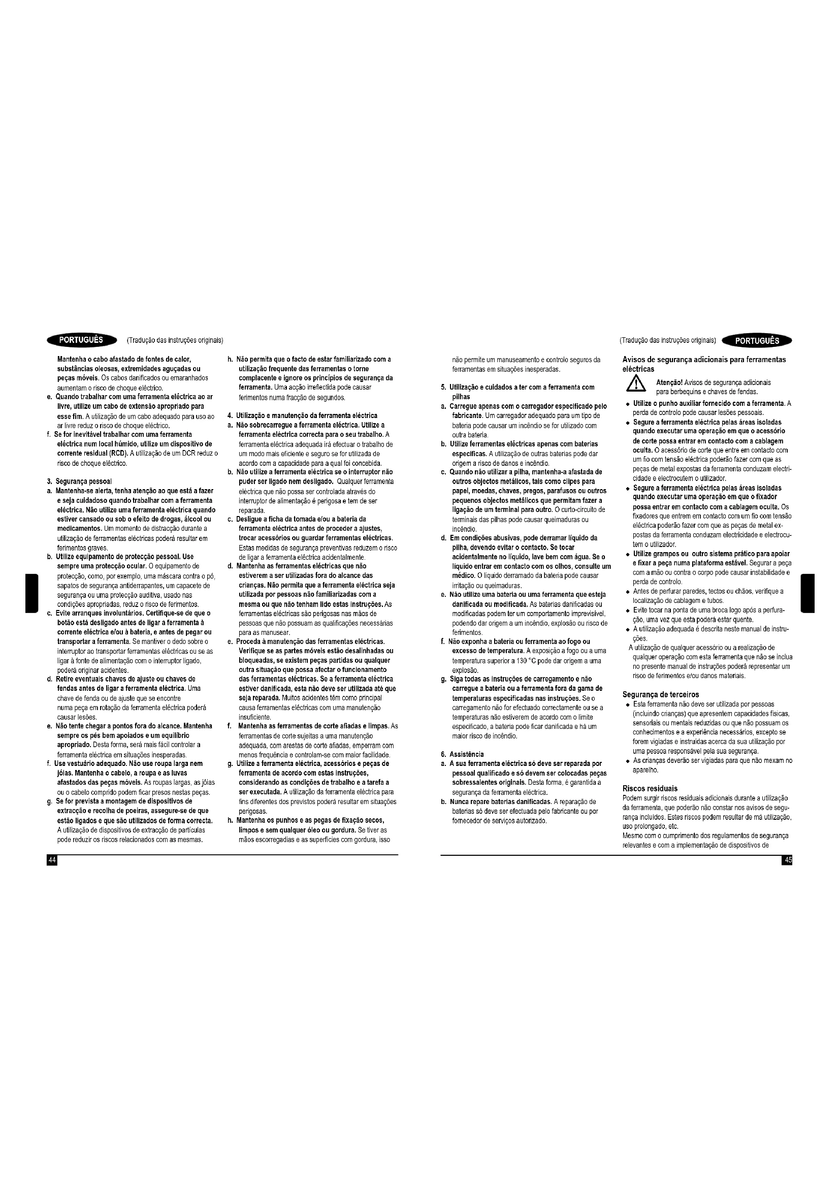 (Tradução das instruções originais) PORTUGUÊS h. Não permita que o facto de estar familiarizado com a utilização frequente das ferramentas o torne complacente e ignore os princípios de segurança da ferramenta. Uma acção irreectida pode causar ferimentos numa fracção de segundos.
