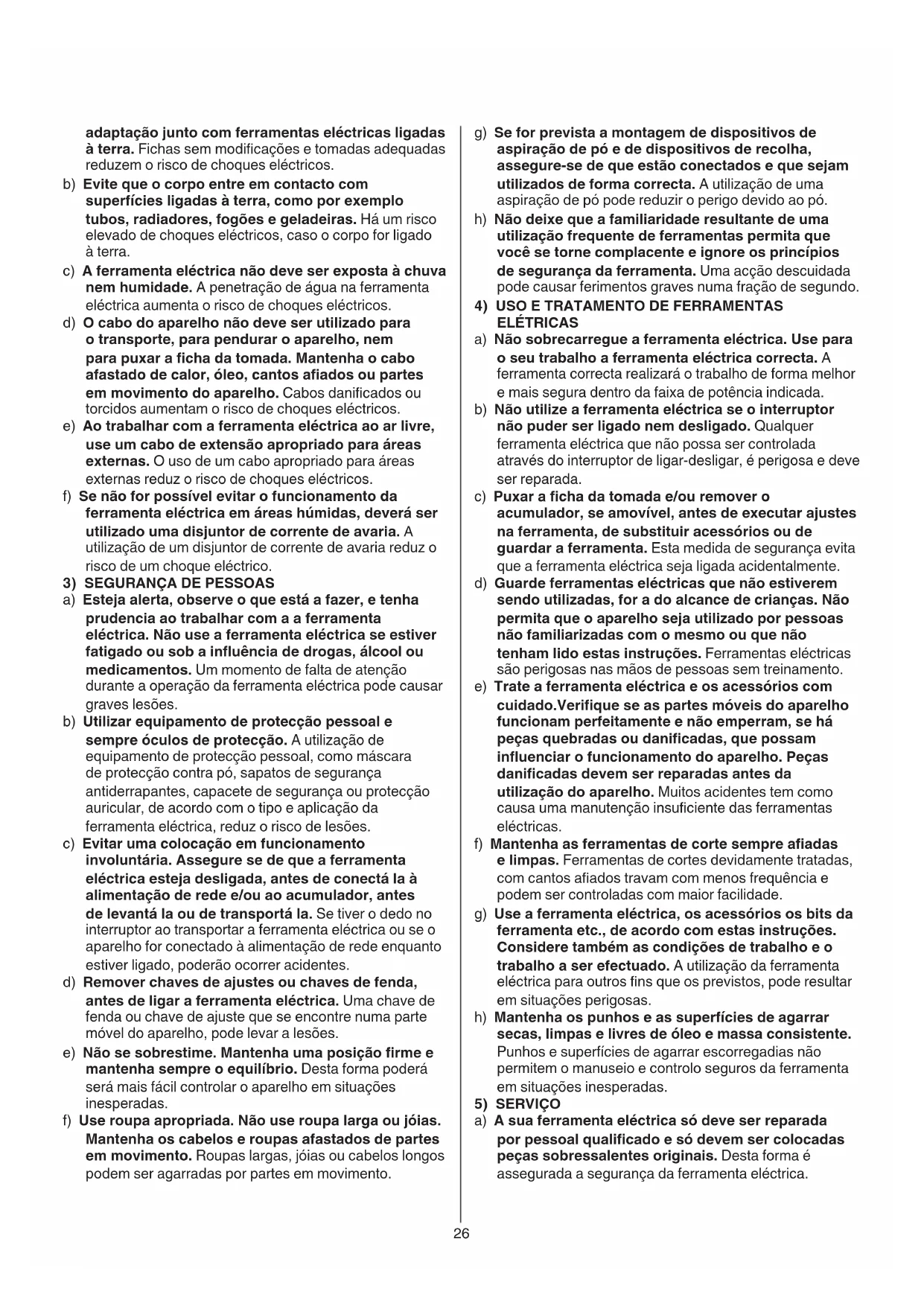 - Em caso de anomalias eléctricas ou mecânicas, desligue imediatamente a ferramenta e tire a cha da tomada