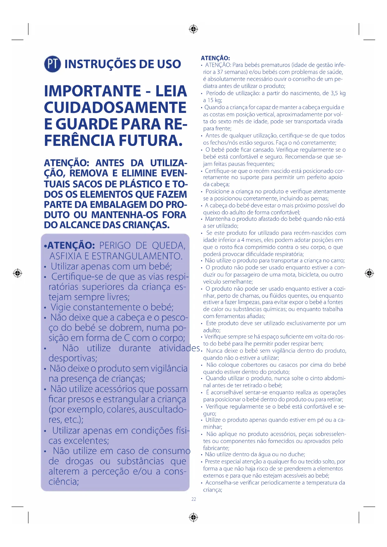Utilizar apenas com um(bebe; - Certifique-se de que as vias respiratorias superiores da crianca estejam sempre livres;