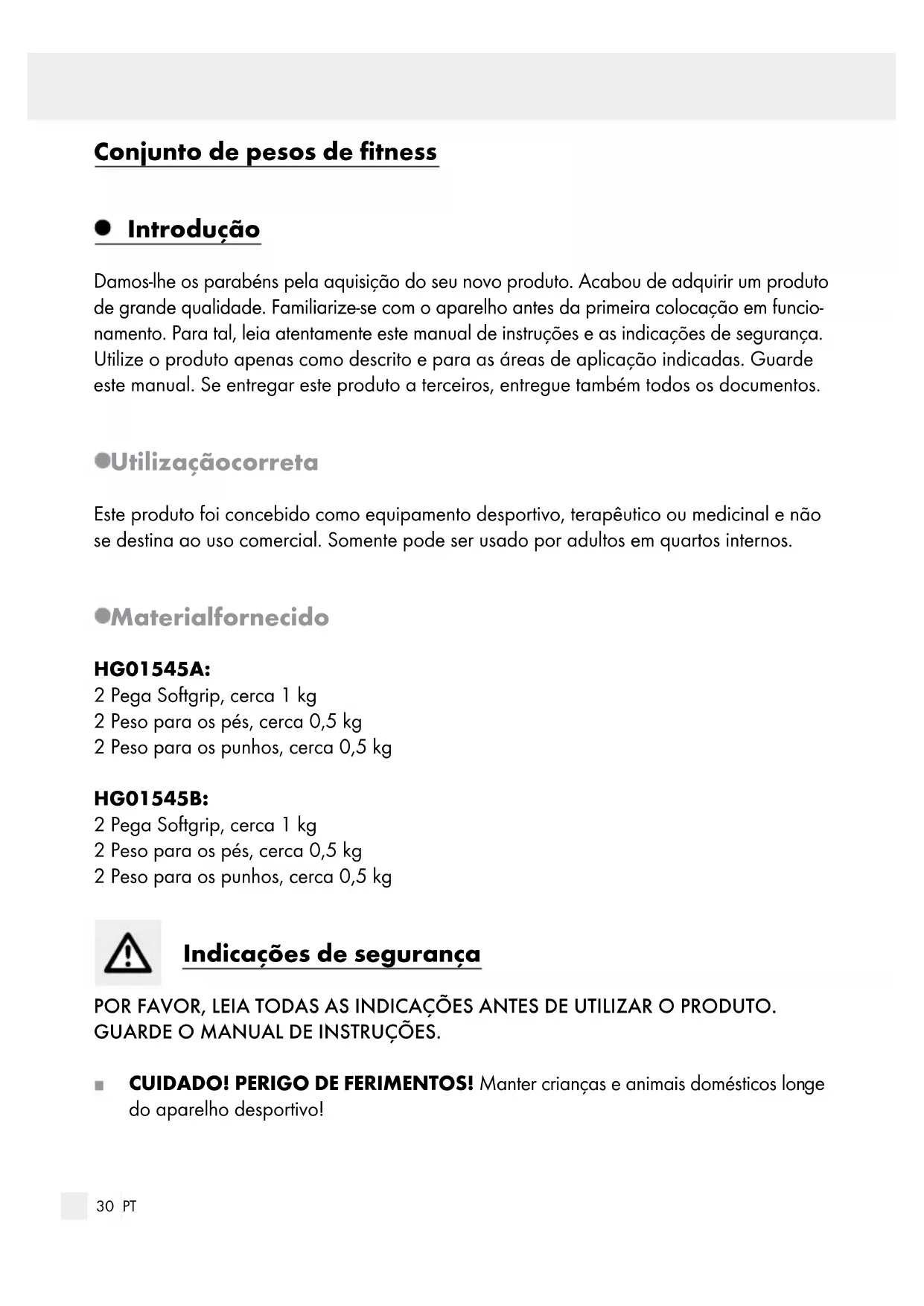CUIDADO! PERIGO DE FERIMENTOS! Manter crianças e animais domesticos longe do aparecido desportivo!