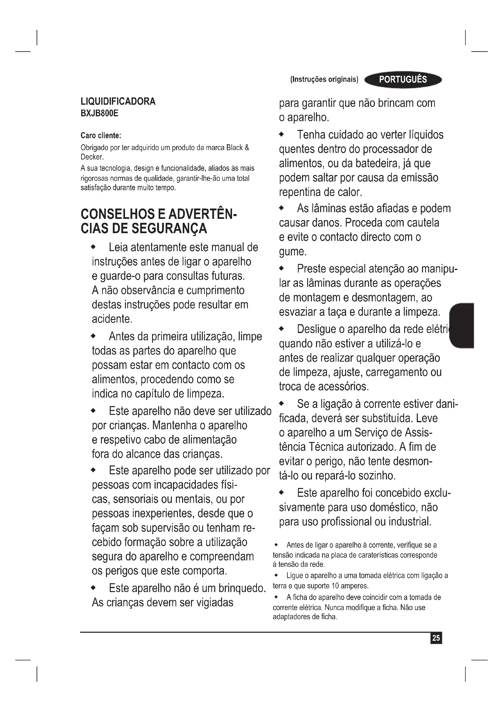 MANUAL DE UTILIZADOR BXJB800E BLACK & DECKER