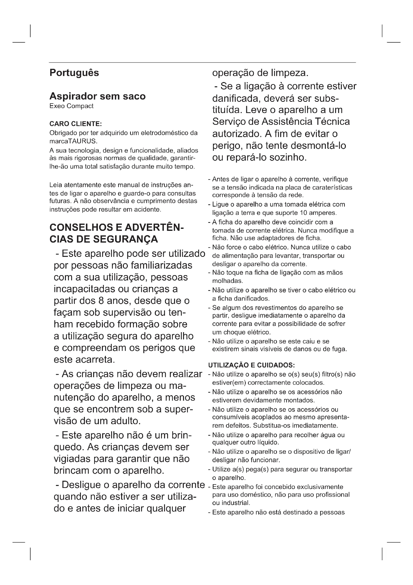 Exeo Compact - Aspirador TAURUS - Manual de utilização gratuito