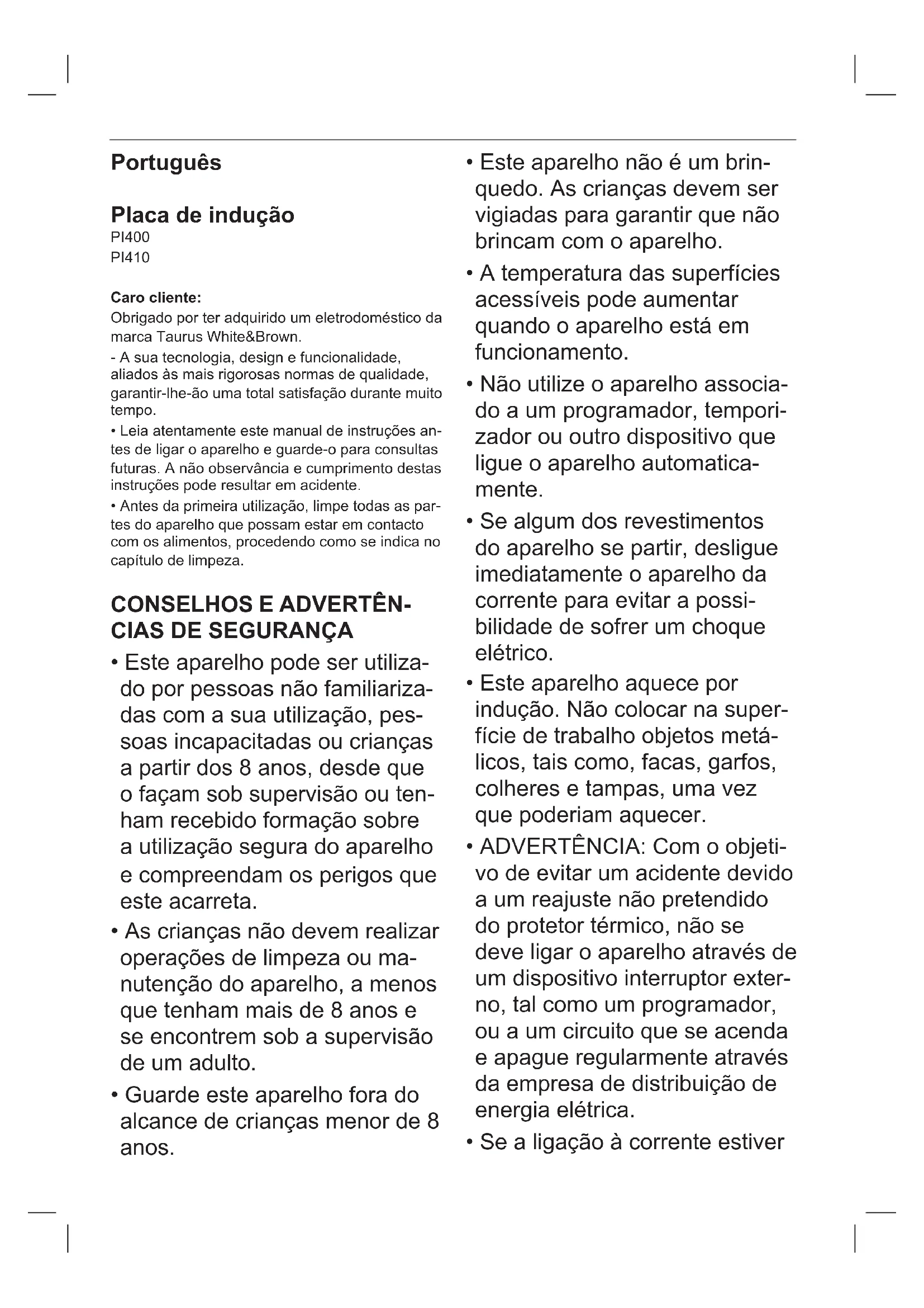 PI 400 - Fogão TAURUS - Manual de utilização gratuito