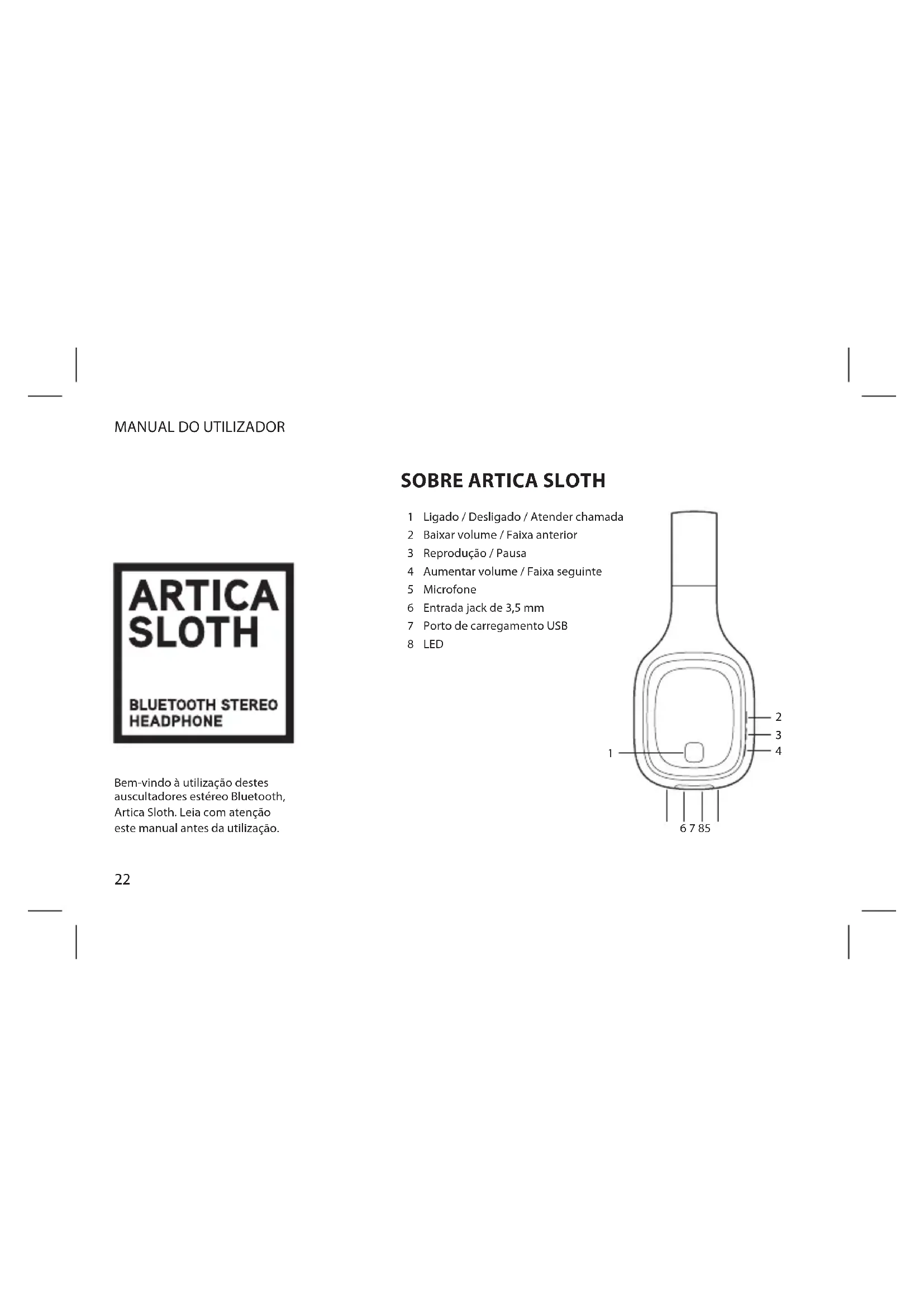 Bem-vindo à utilização destes auscultadores estéreo Bluetooth, Artica Sloth. Leia com atenção este manual antes da utilização.PORTUGUÊS