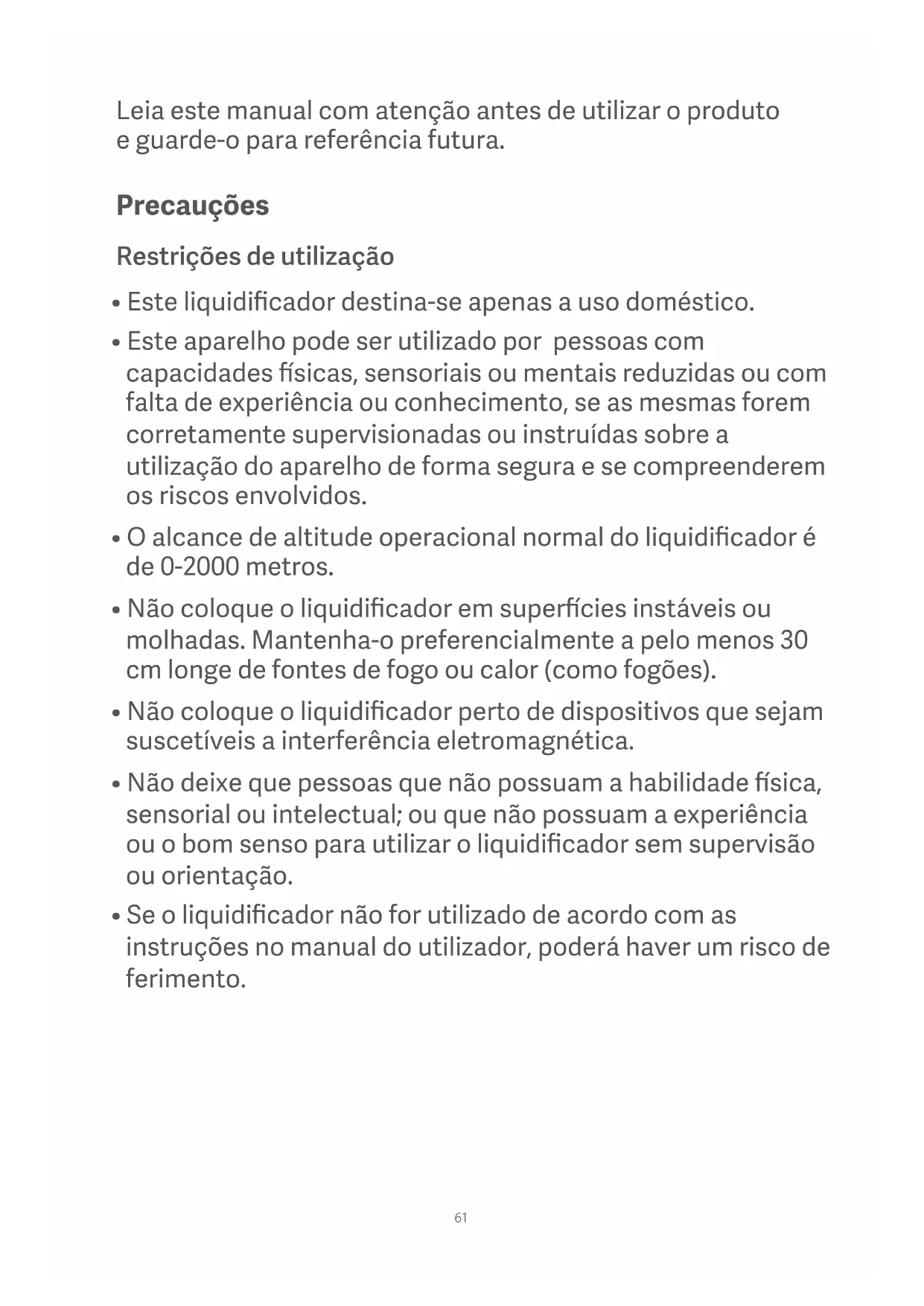 - Este liquidificador destina-se apenas a uso doméstico.
