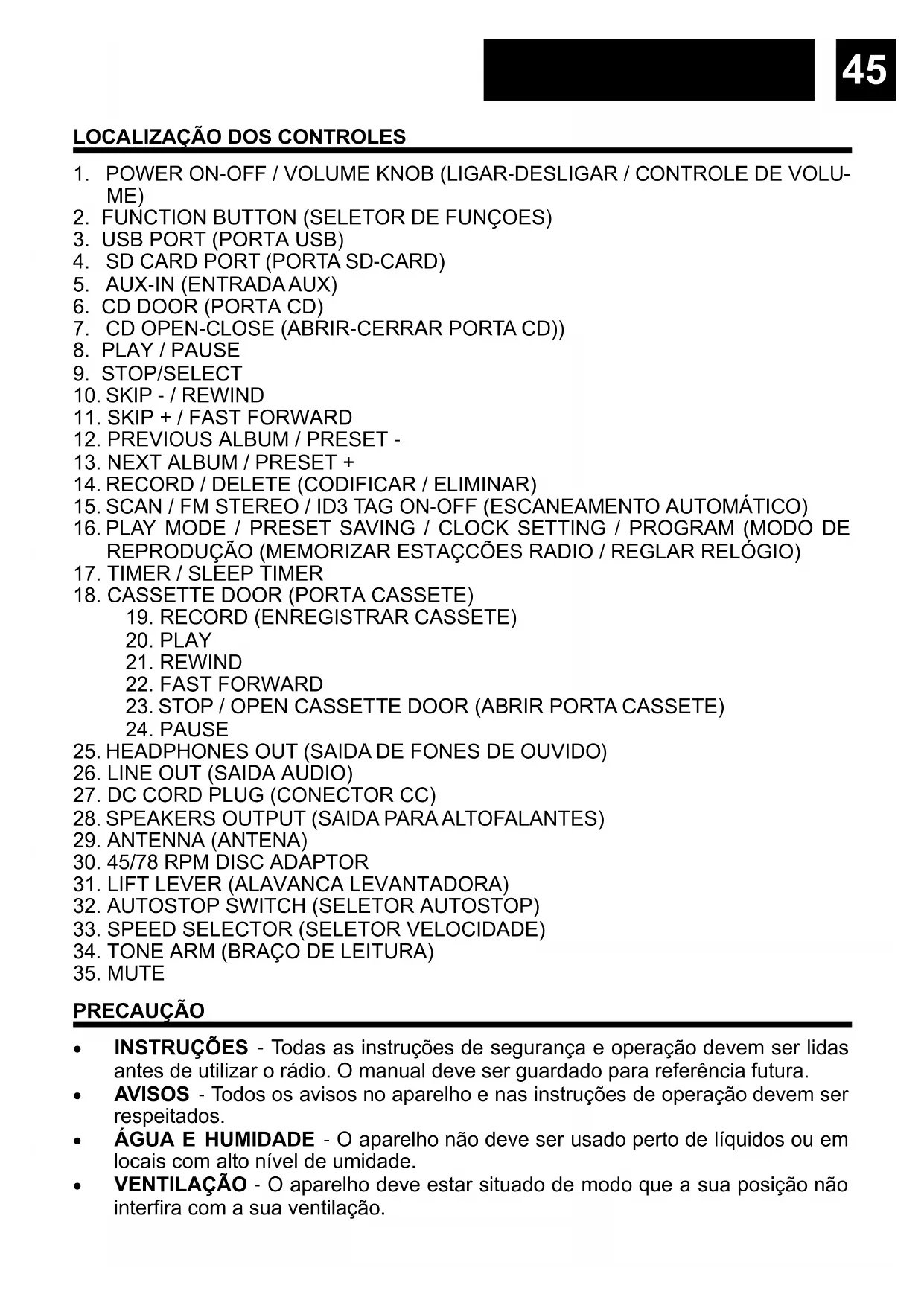 - Pressione [STOP/EJECT] (23) quando quiser terminar a reprodução, pressione novamente para abrir a porta do cassette;