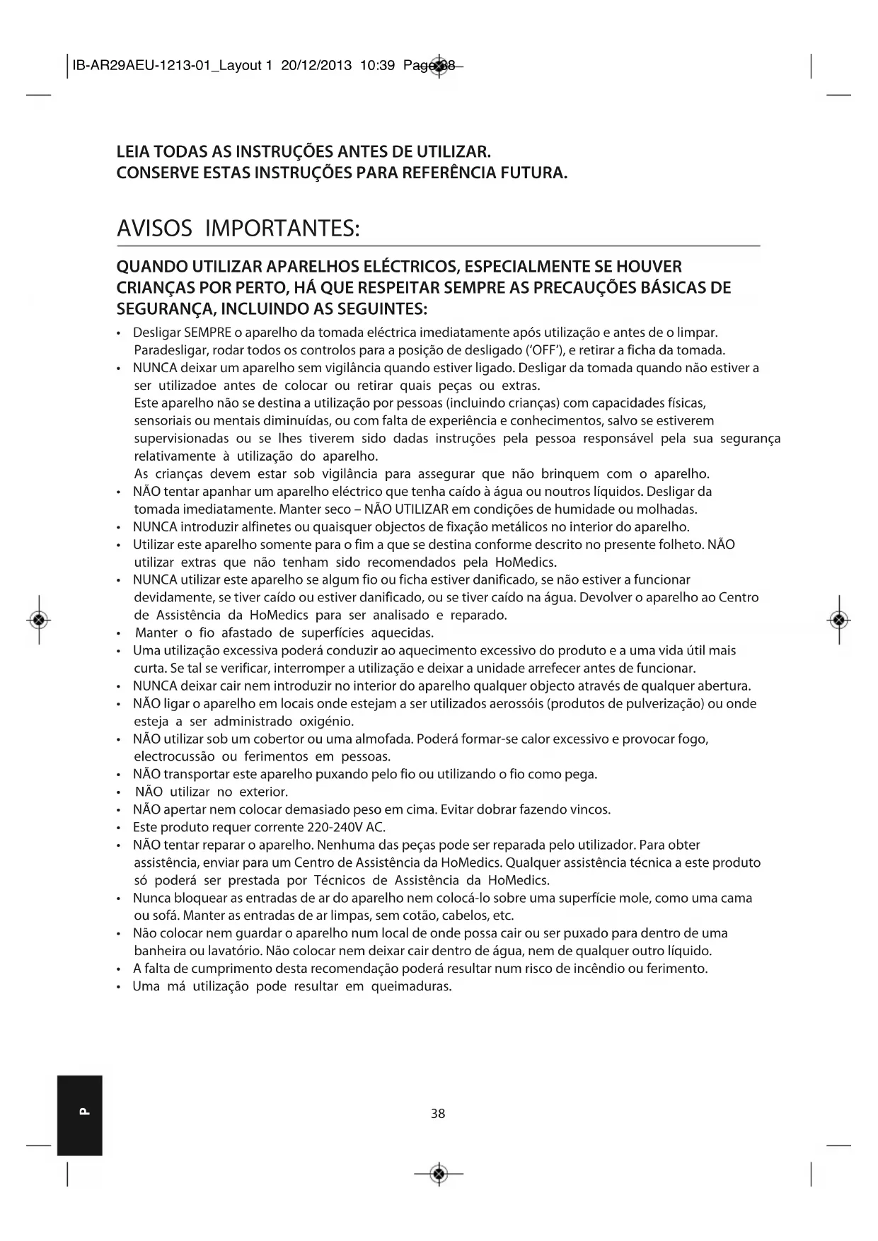 - Uma má utilização pode resultar em queimaduras. IB-AR29AEU-1213-01_Layout 1 20/12/2013 10:39 Page 3839