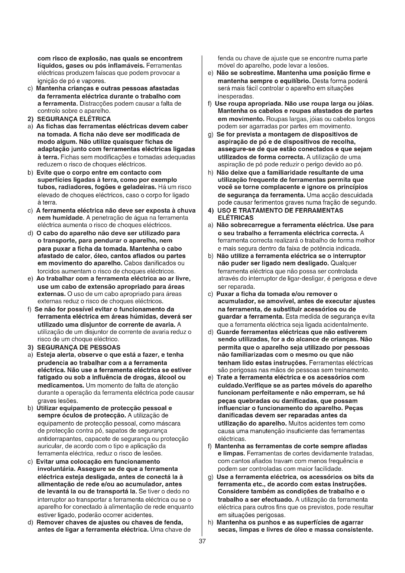 - AVISO Leia todos os avisos de segurança, instruções, ilustrações e especicações fornecidas com esta ferramenta eléctrica. O incumprimento de todas as instruções enumeradas abaixo poderá resultar em choque eléctrico, incêndio e/ou lesão grave. Guarde bem todas as advertências e instruções para futura referência. O termo “ferramenta eléctrica” utilizado a seguir nas indicações de advertência, refere-se a ferramentas eléctricas operadas com corrente de rede (com cabo de rede) e a ferramentas eléctricas operadas com acumulador (sem cabo de rede).