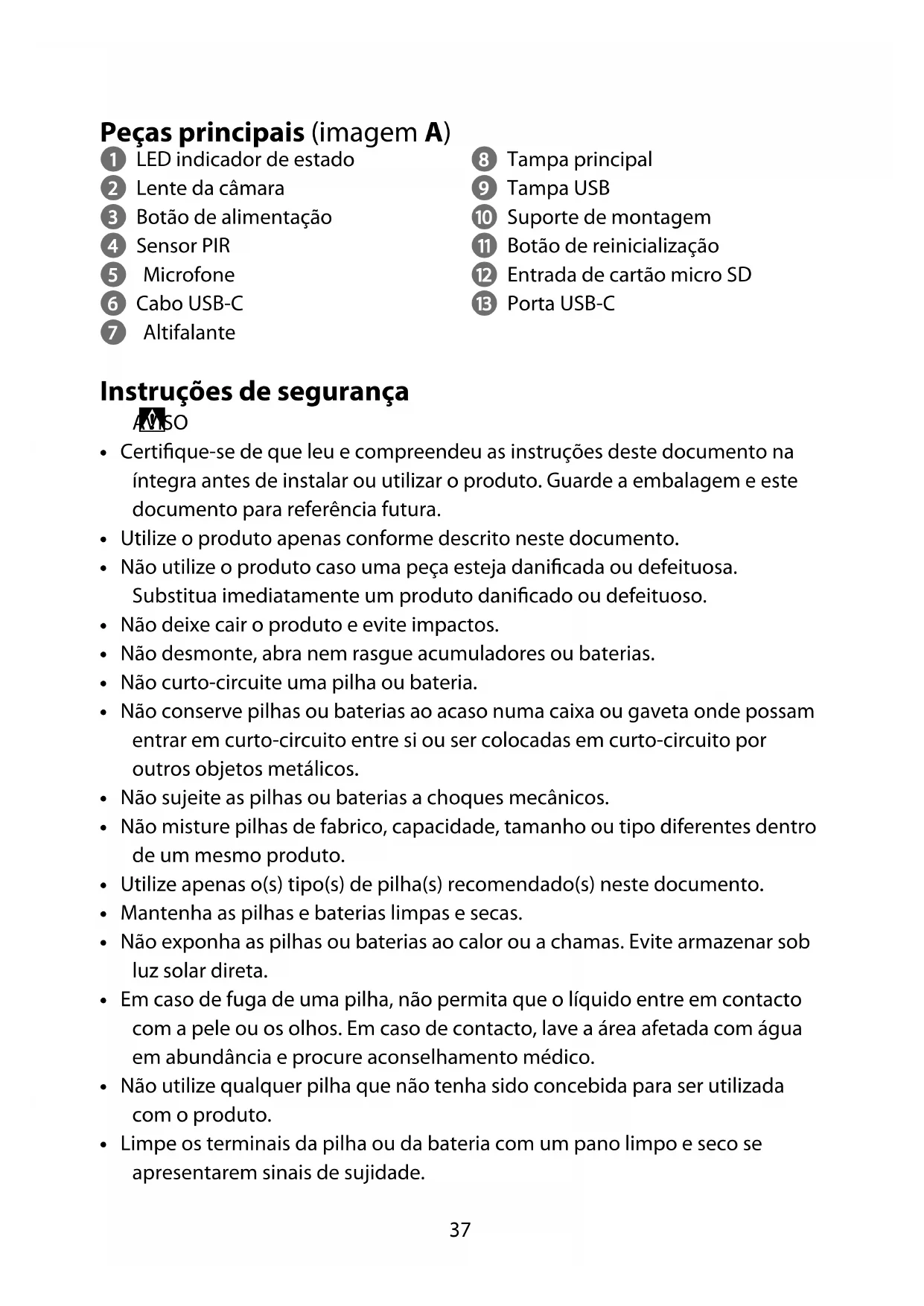 - Utilize apenas o(s) tipo(s) de pilha(s) recomendado(s) neste documento.