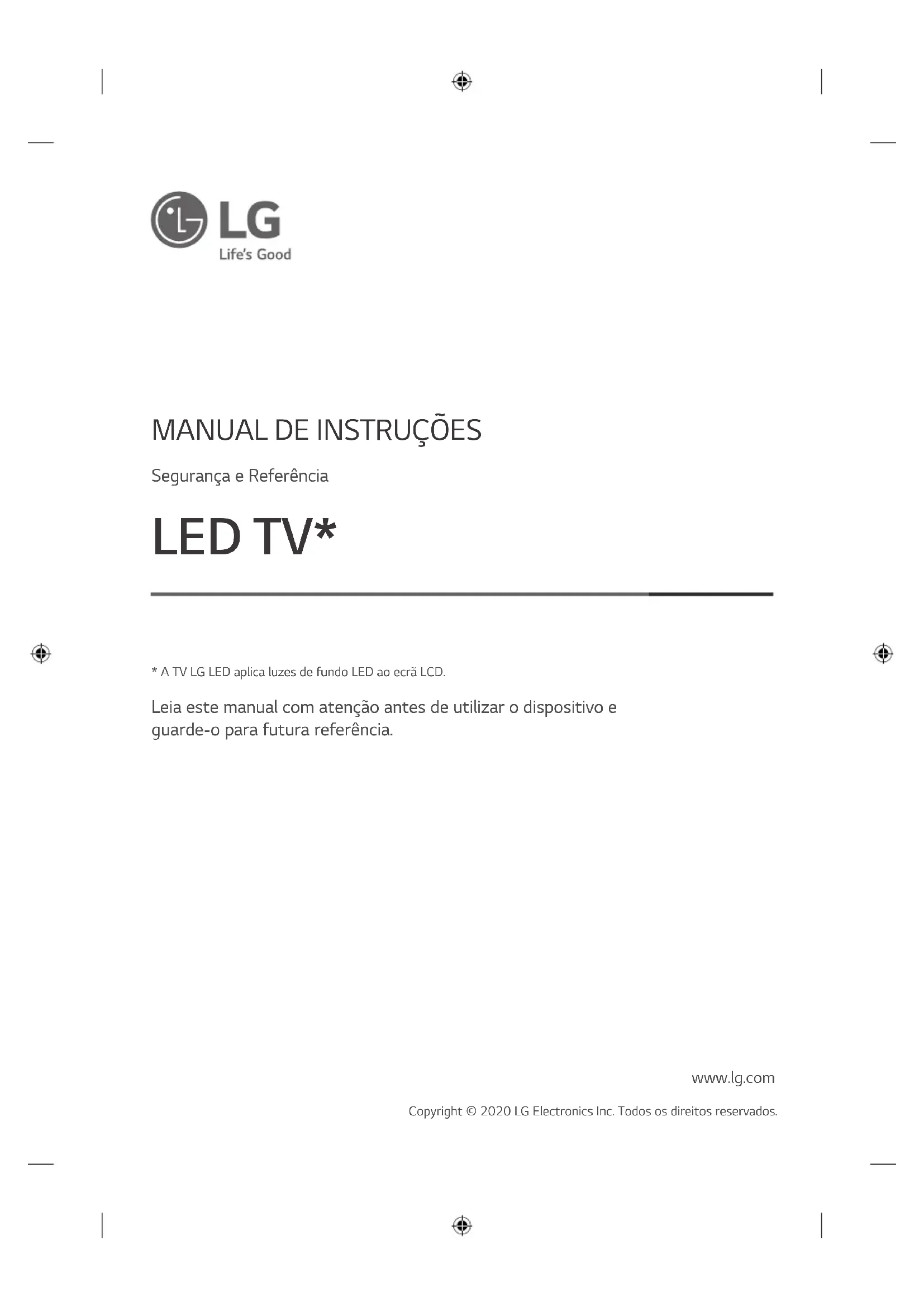 - A TV LG LED aplica luzes de fundo LED ao ecrã LCD. www.lg.com Copyright © 2020 LG Electronics Inc. Todos os direitos reservados.2 PORTUGUÊS Aviso! Instruções de segurança CUIDADO