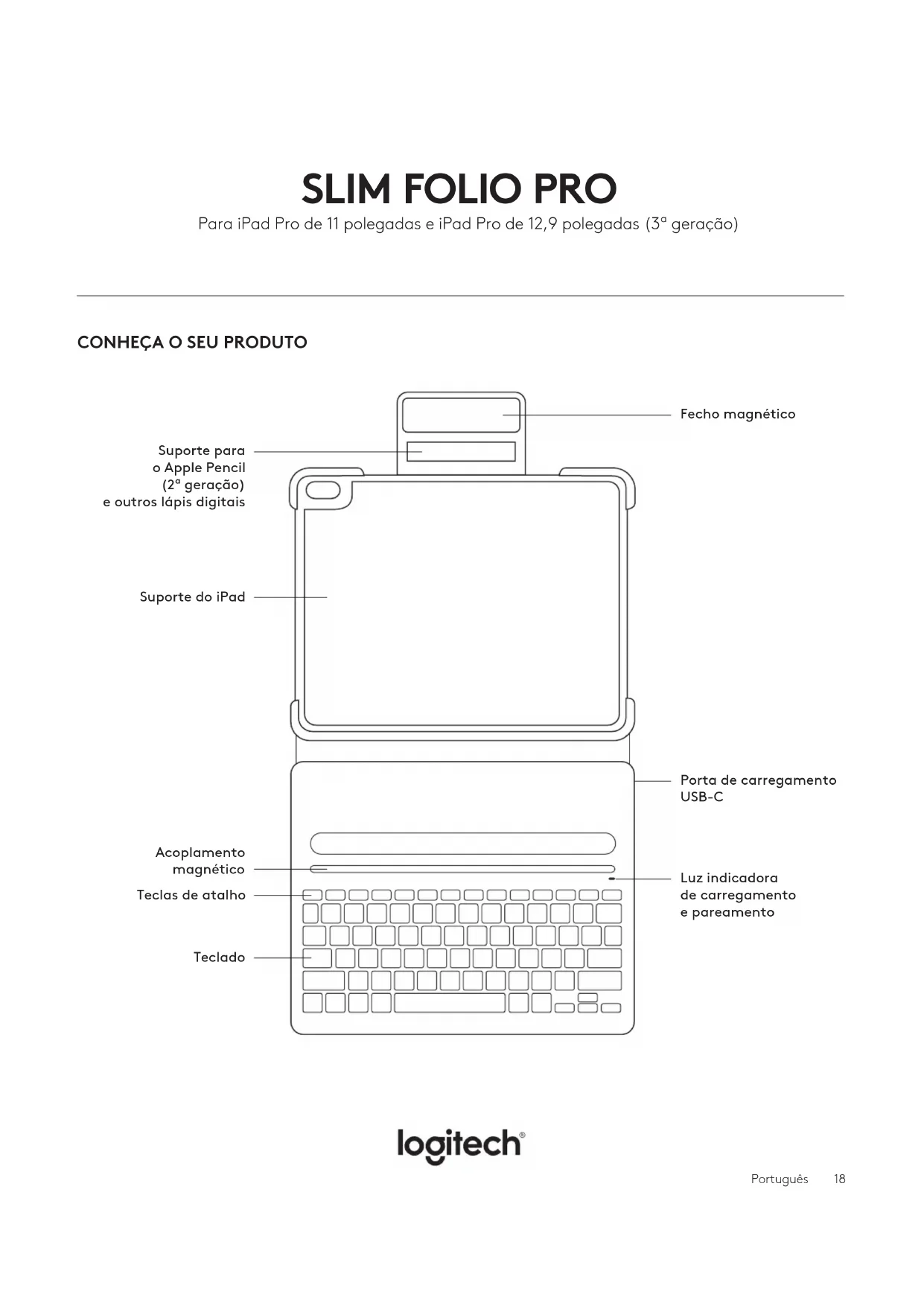 Baixe as instruções para o seu Teclado em formato PDF gratuitamente! Encontre o seu manual Slim Folio Pro - LOGITECH e retome o controlo do seu dispositivo eletrónico. Nesta página estão publicados todos os documentos necessários para a utilização do seu dispositivo. Slim Folio Pro da marca LOGITECH.