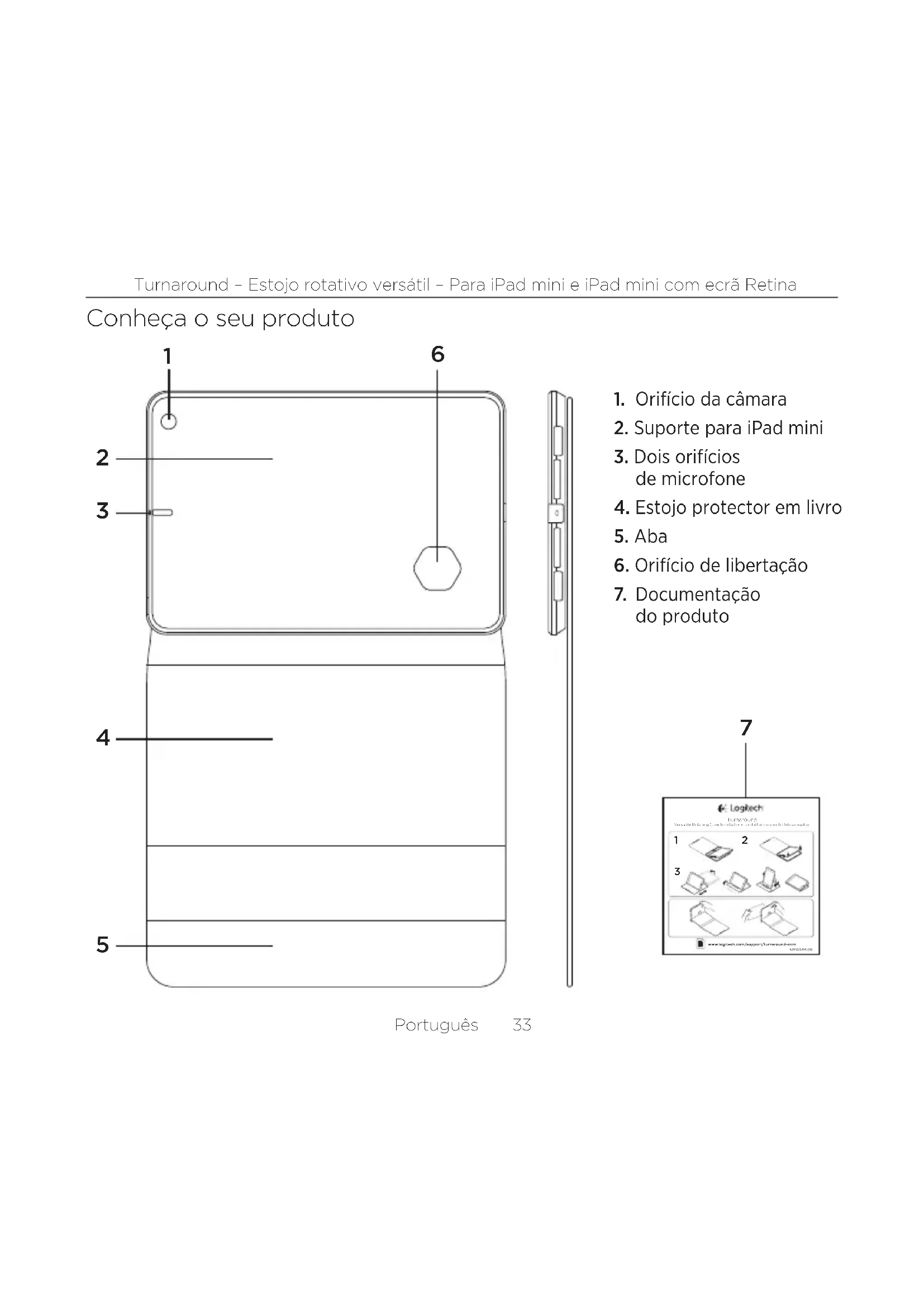 - Certifique-se de que o iPad mini está introduzido no suporte do iPad mini na direcção correcta. Qual a sua opinião? Despenda um minuto para nos dar a sua opinião. Obrigado por adquirir o nosso produto. www.logitech.com/ithinkNederlands 39 Turnaround - Veelzijdige roterende case - Voor iPad mini en iPad mini met Retina-display Ken uw product