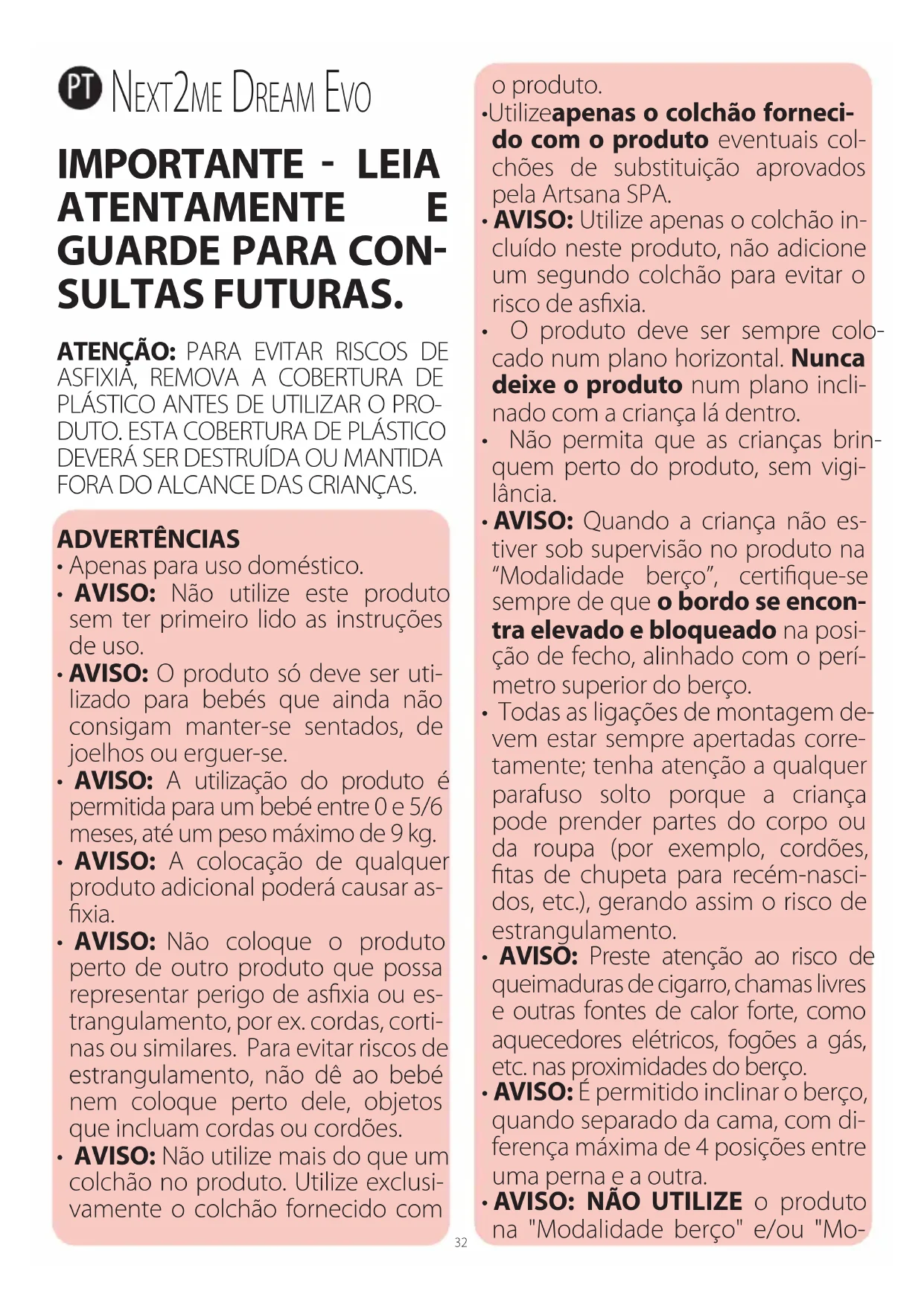 - AVISO: Durante a utilização, certificque-se de que os lenços, mantas, etc. da cama dos pais, não invadiam o espaço do berço.
