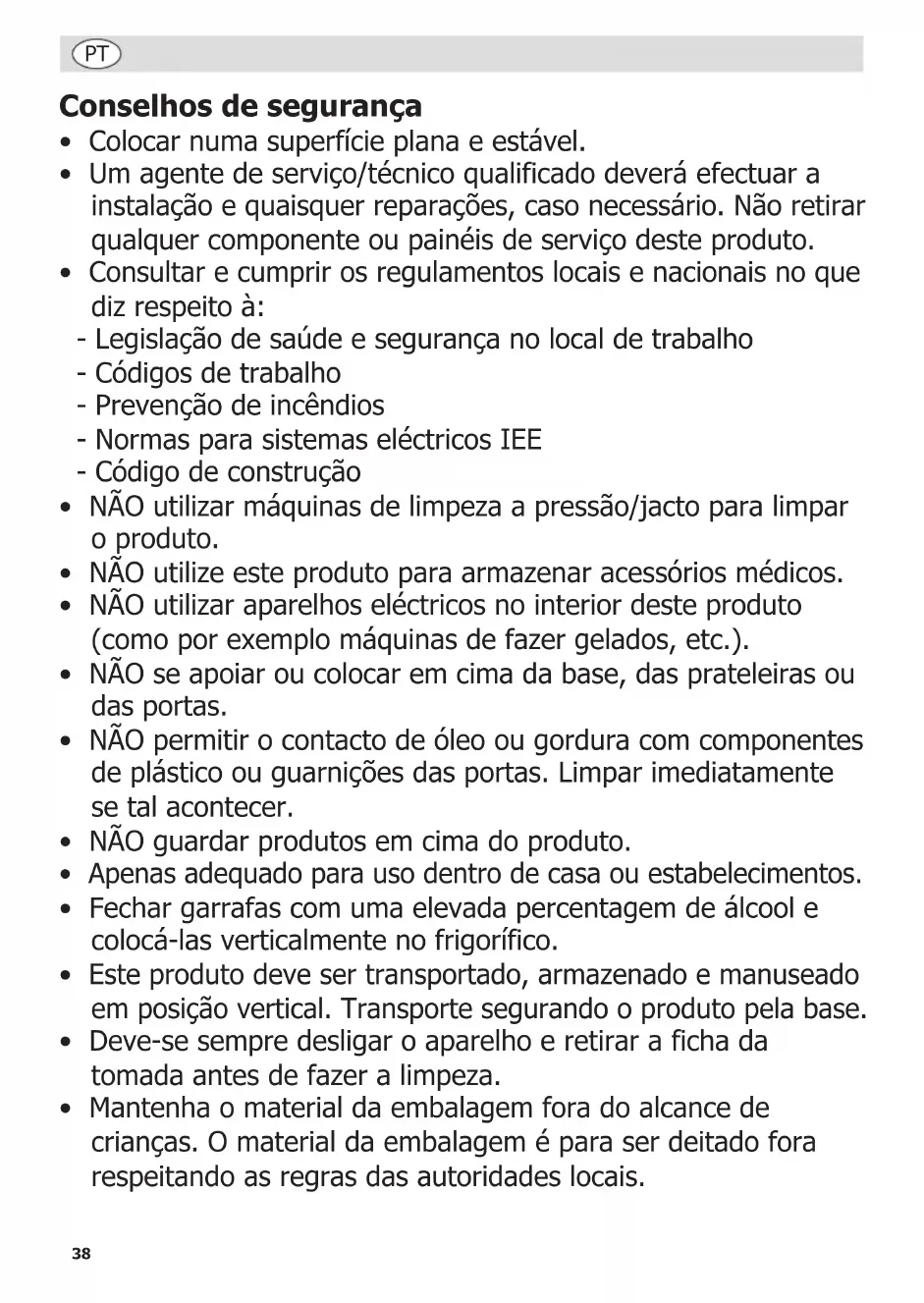 - Mantenha o material da embalagem fora do alcance de crianças. O material da embalagem é para ser deitado fora respeitando as regras das autoridades locais.39