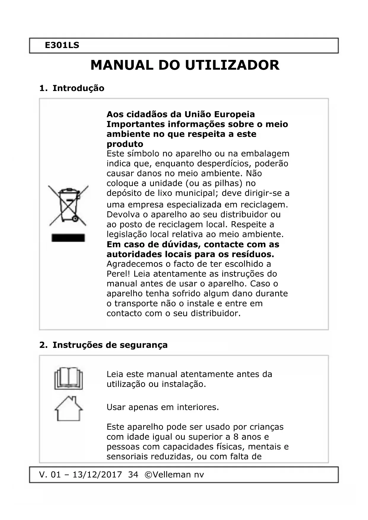 MANUAL DE UTILIZADOR E301LS VELLEMAN