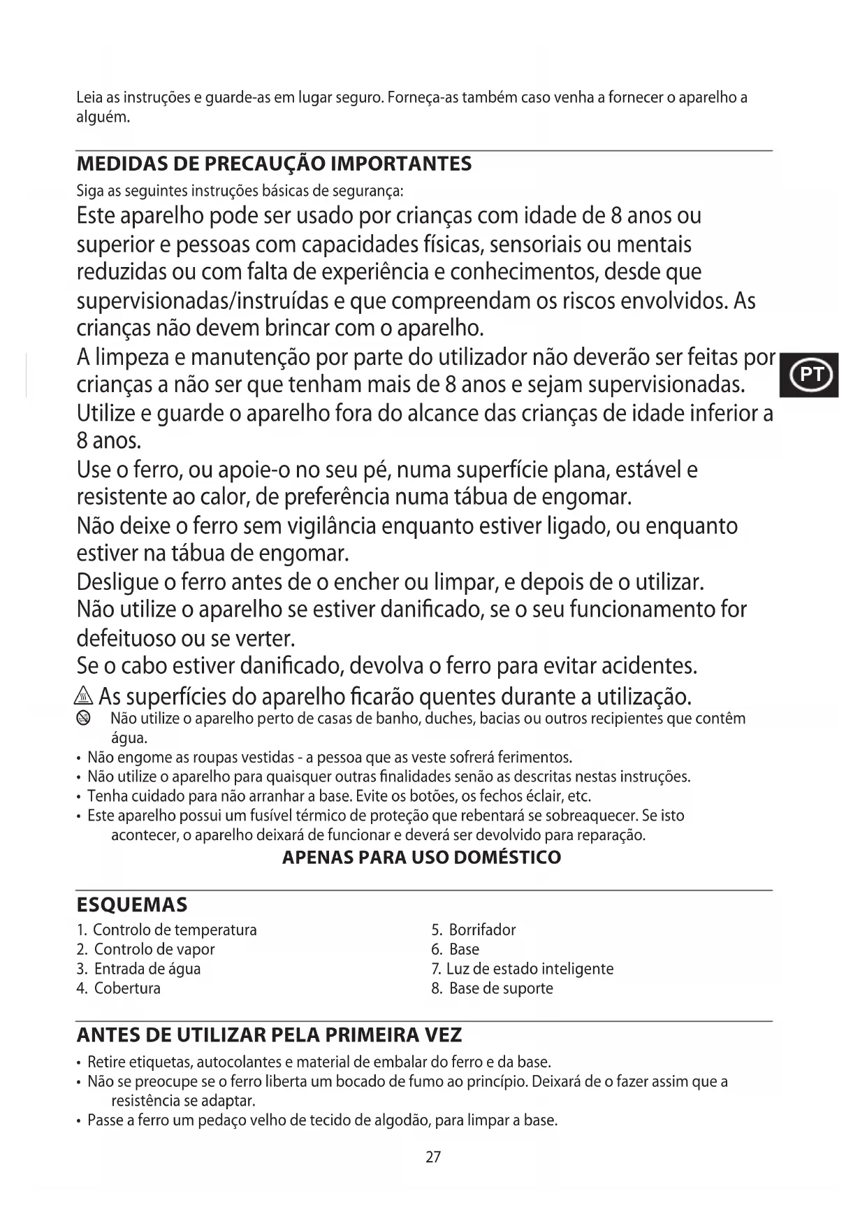 Utilize e guarde o aparelho fora do alcance das crianças de idade inferior a 8 anos.