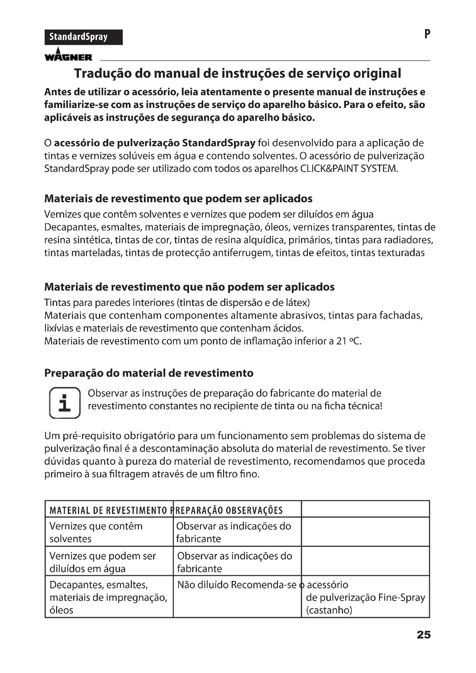 StandardSpray - Spray de tinta WAGNER - Manual de utilização gratuito