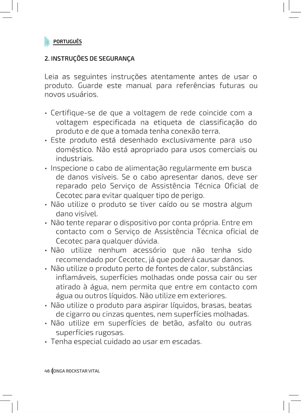 MANUAL DE UTILIZADOR Conga Rockstar 100 Vital CECOTEC