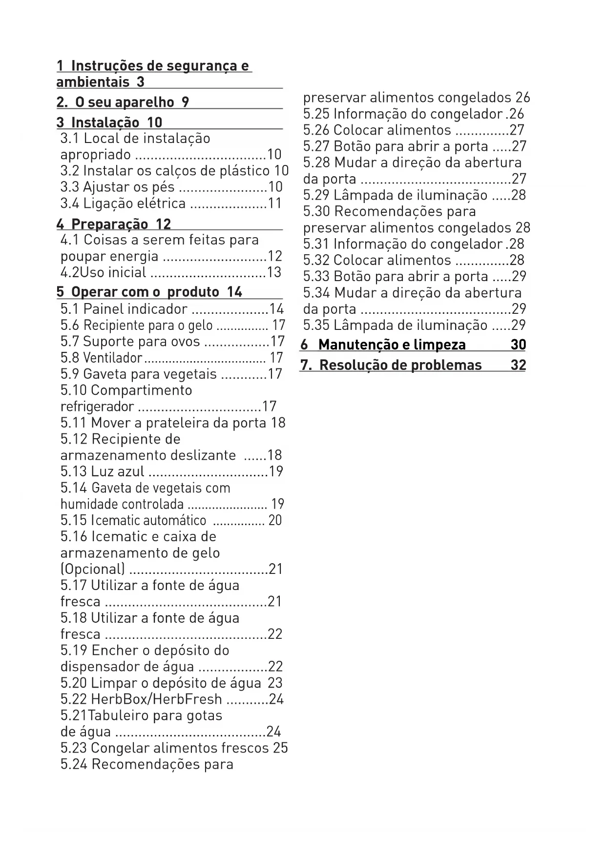 5.25 Informação do congelador .26