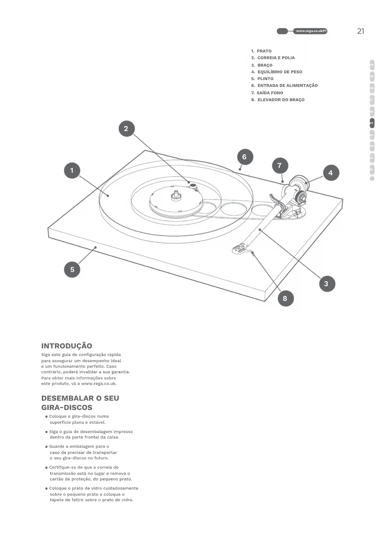 INTRODUÇÃO Siga este guia de configuração rápida para assegurar um desempenho ideal e um funcionamento perfeito. Caso contrário, poderá invalidar a sua garantia. Para obter mais informações sobre este produto, vá a www.rega.co.uk.