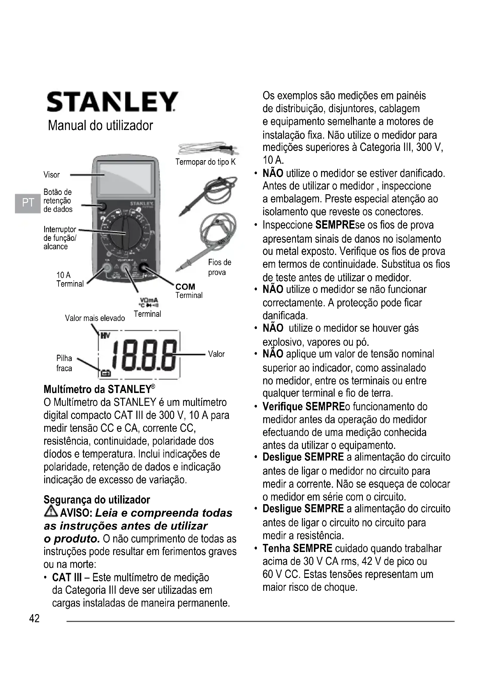 STHT077364 - Multímetro STANLEY - Manual de utilização gratuito