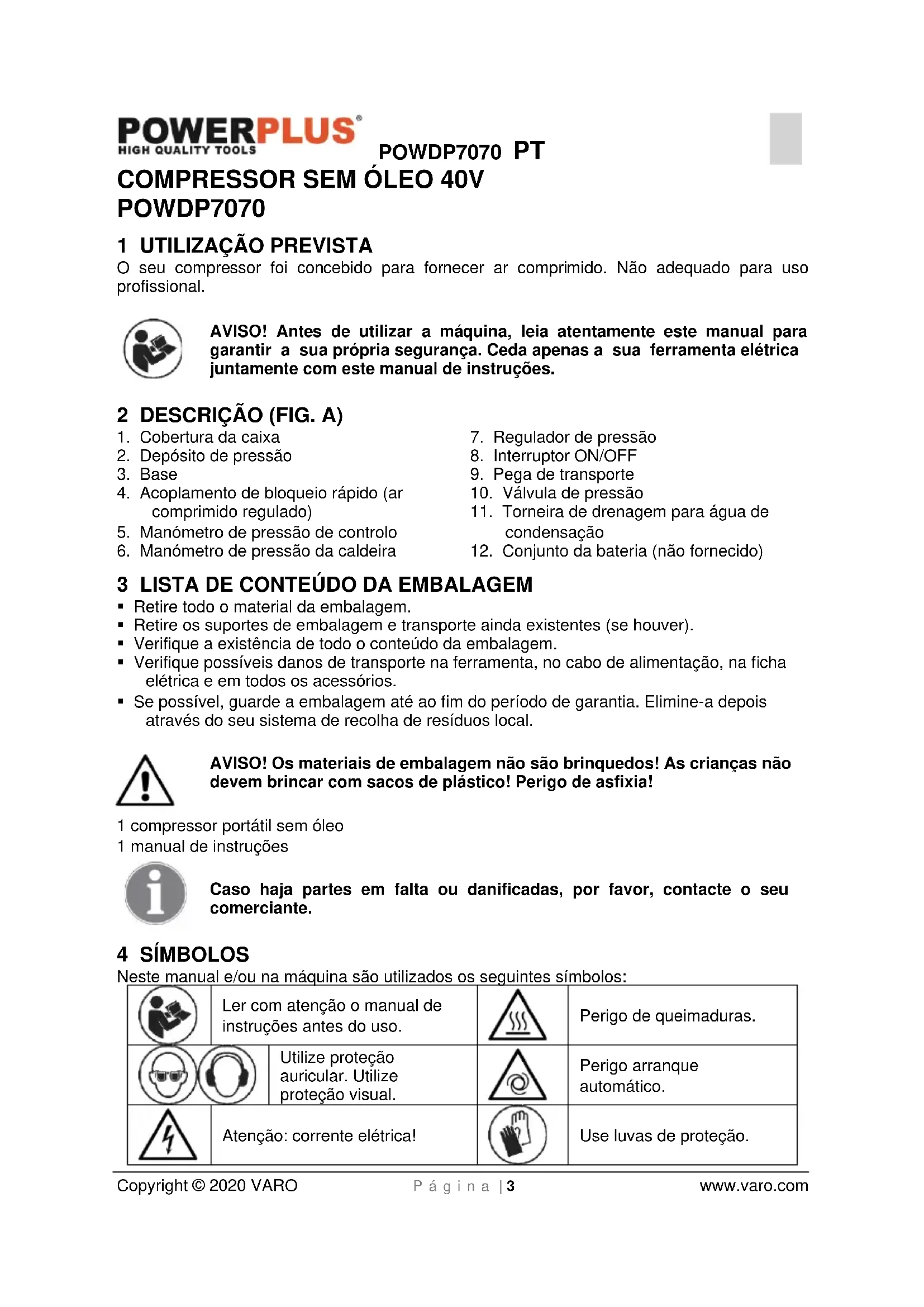 POWDP7070 - Compressor PowerPlus - Manual de utilização gratuito