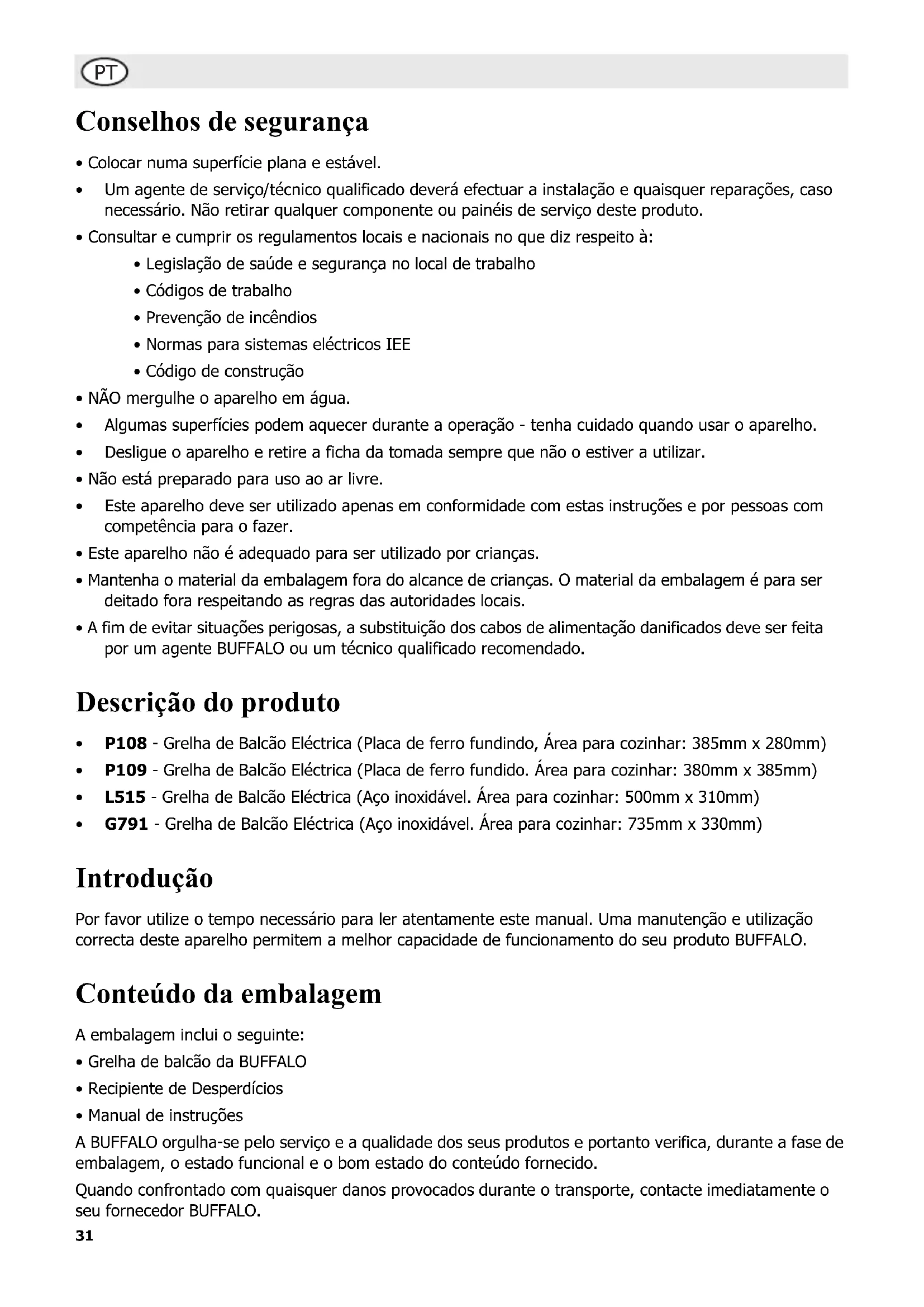 P108 - Chapa de grelha BUFFALO - Manual de utilização gratuito