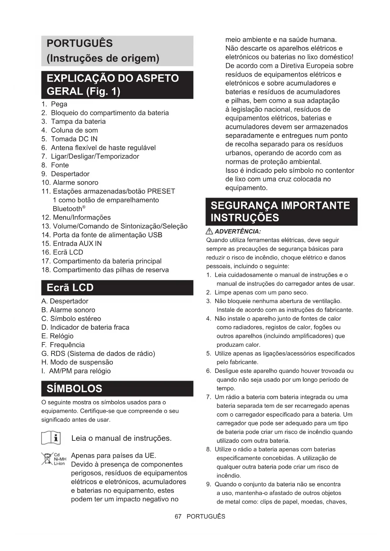 19. Mantenha a bateria longe de crianças.69 PORTUGUÊS