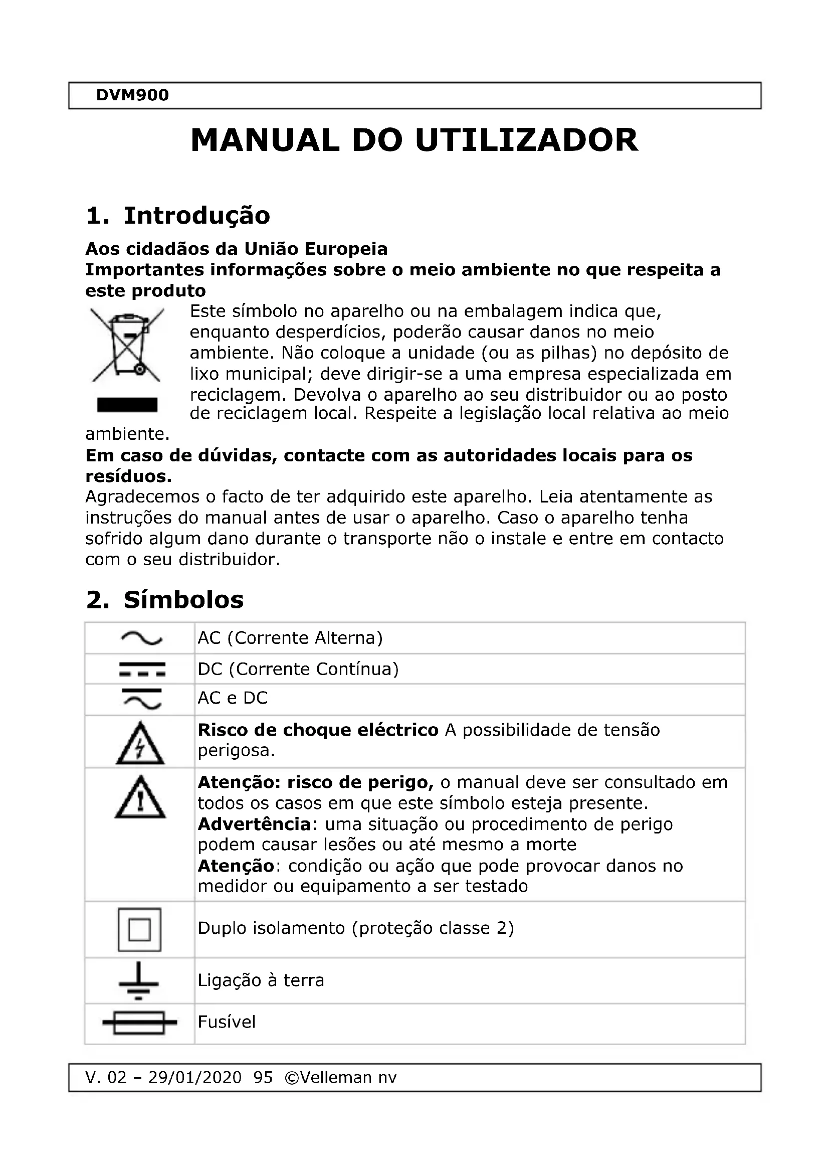 Encontre gratuitamente o manual do aparelho DVM900 VELLEMAN em formato PDF.