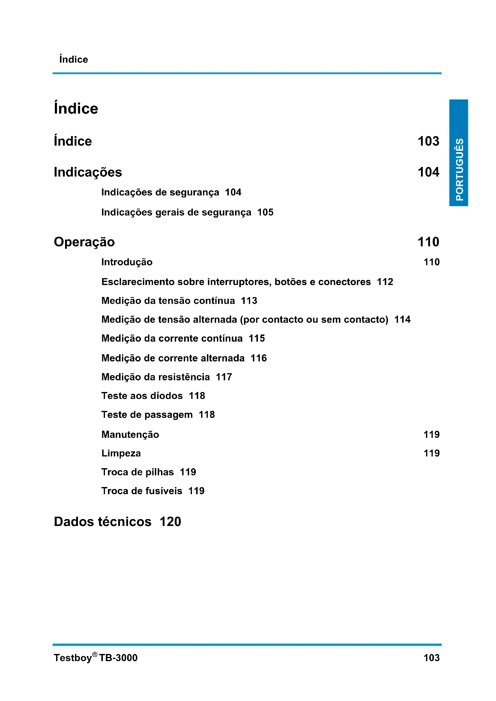 Encontre gratuitamente o manual do aparelho TB3000 Testboy em formato PDF.