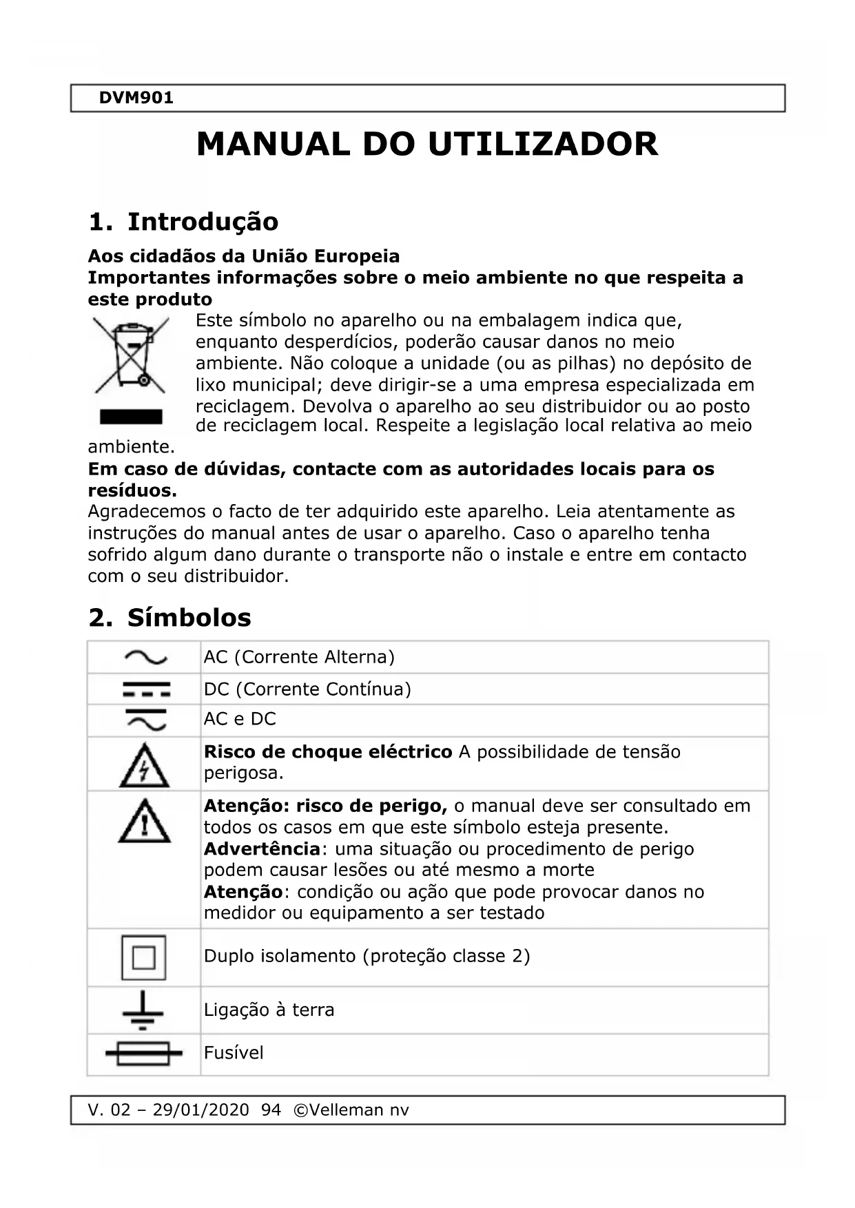 DVM901 - Multímetro VELLEMAN - Manual de utilização gratuito