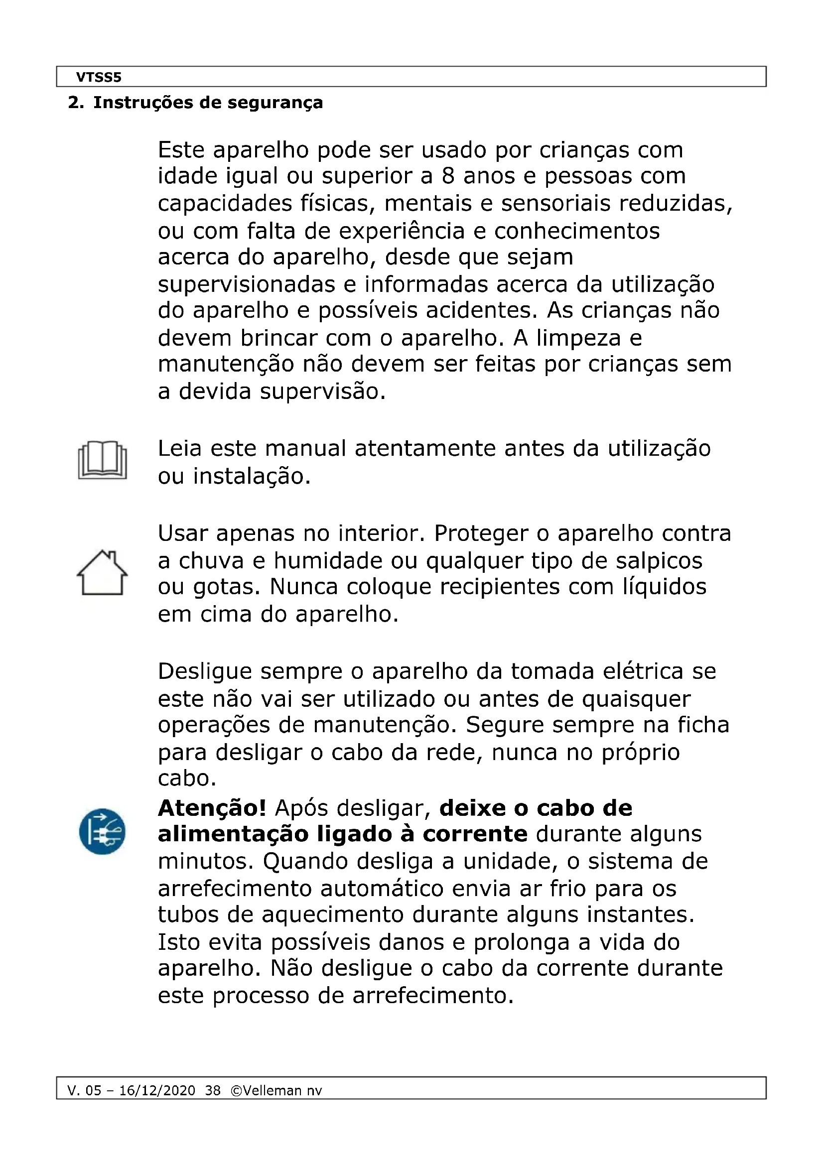Encontre gratuitamente o manual do aparelho VTSS5 VELLEMAN em formato PDF.