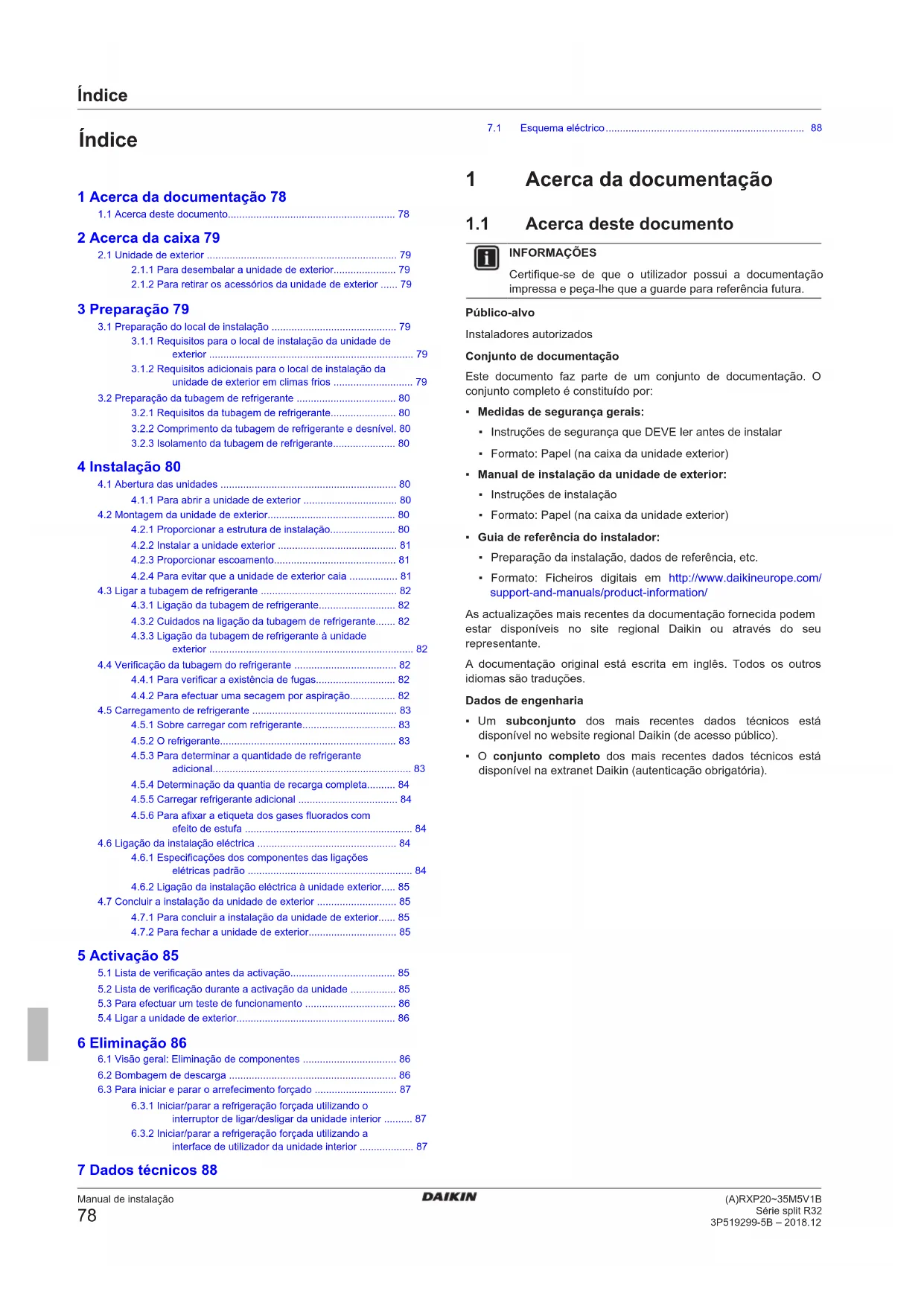 Série split R32 3P519299-5B – 2018.12 Índice 1 Acerca da documentação 78