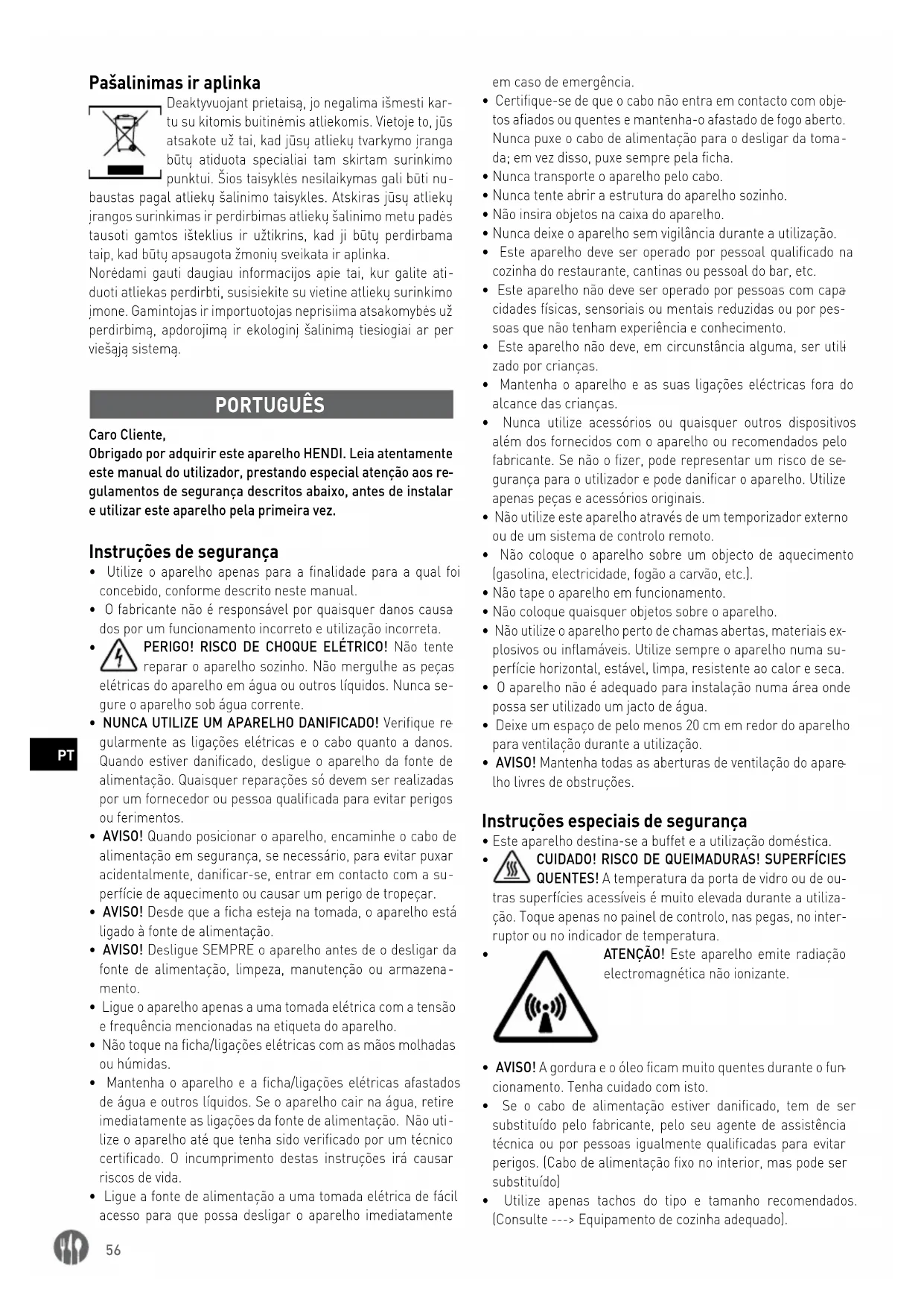 ATENÇÃO! Este aparelho emite radiação electromagnética não ionizante.