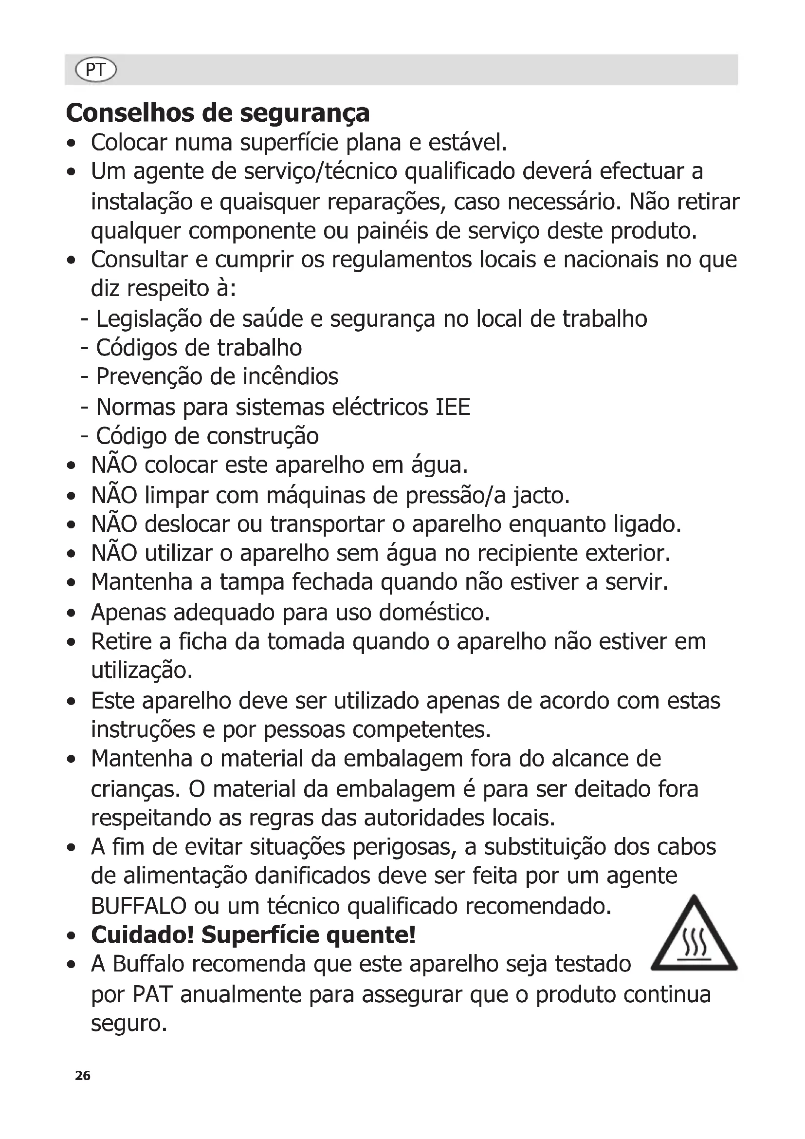 - A Buffalo recomenda que este aparelho seja testado por PAT anualmente para assegurar que o produto continua seguro.27