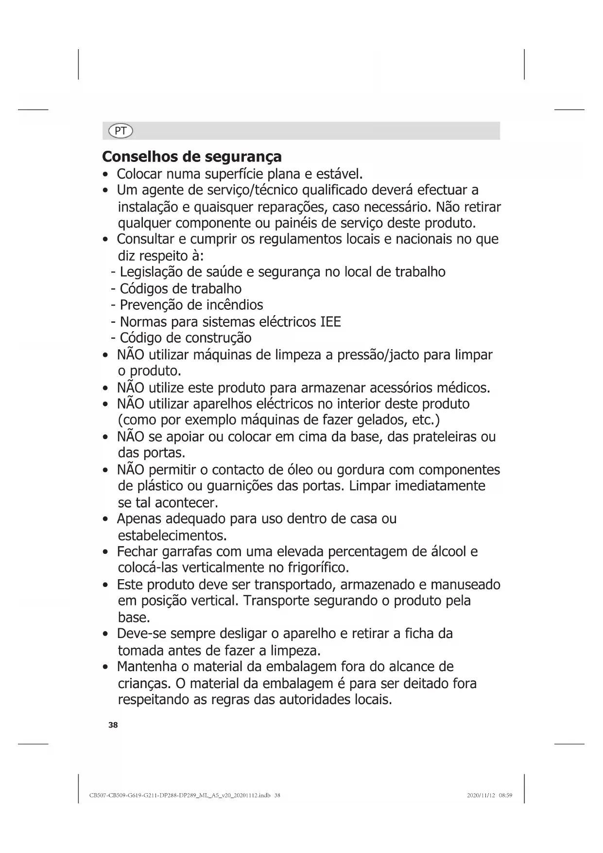 - Mantenha o material da embalagem fora do alcance de crianças. O material da embalagem é para ser deitado fora respeitando as regras das autoridades locais. CB507-CB509-G619-G211-DP288-DP289_ML_A5_v20_20201112.indb 38CB507-CB509-G619-G211-DP288-DP289_ML_A5_v20_20201112.indb 38 2020/11/12 08:592020/11/12 08:5939