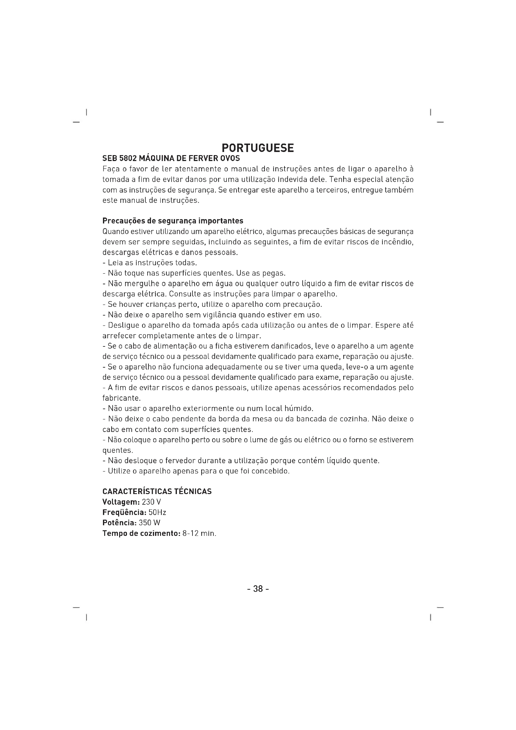 Voltagem: 230 V Freqüência: 50Hz Potência: 350 W Tempo de cozimento: 8-12 min.- 39 -