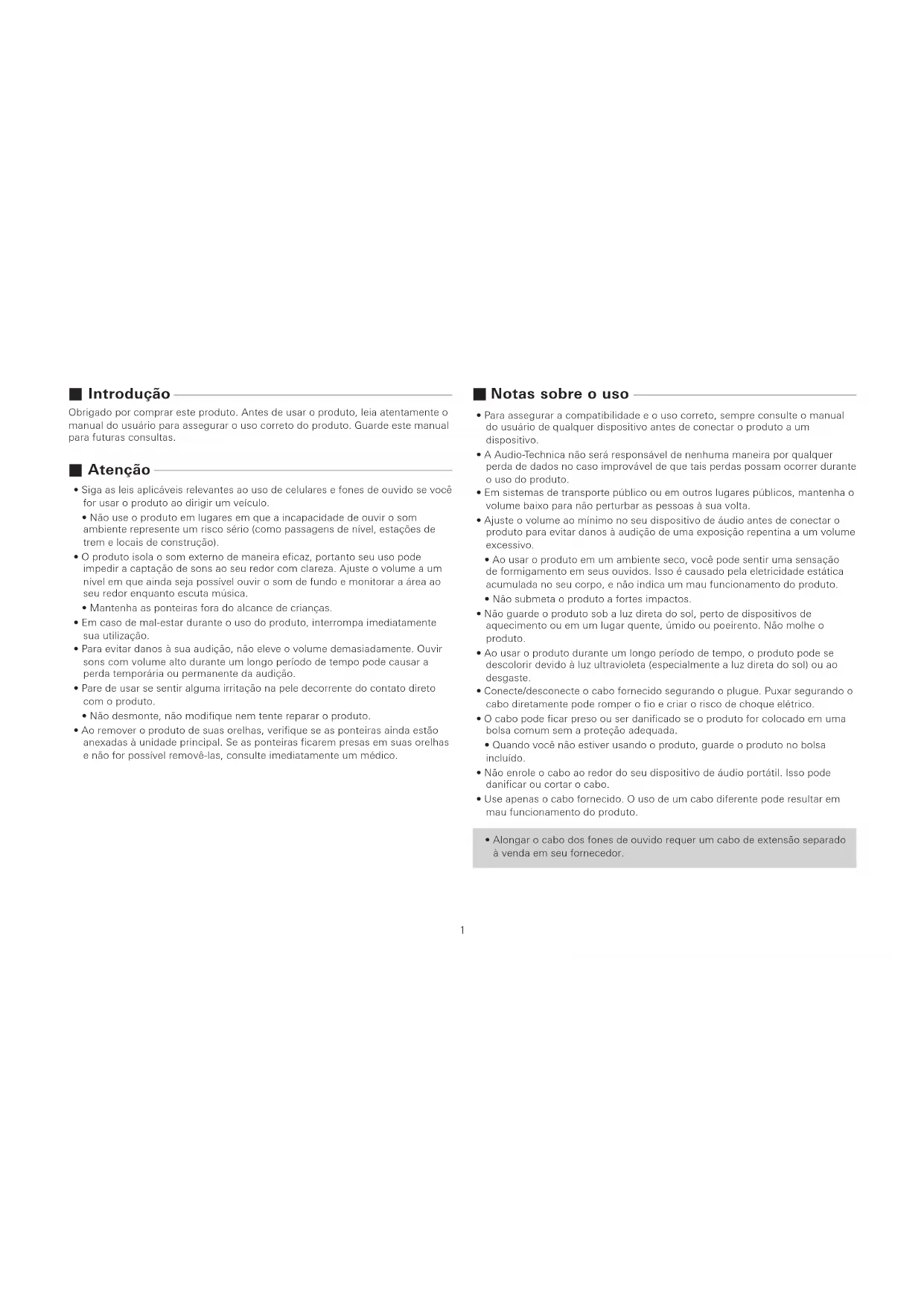 - Ao usar o produto em um ambiente seco, você pode sentir uma sensação de formigamento em seus ouvidos. Isso é causado pela eletricidade estática acumulada no seu corpo, e não indica um mau funcionamento do produto.