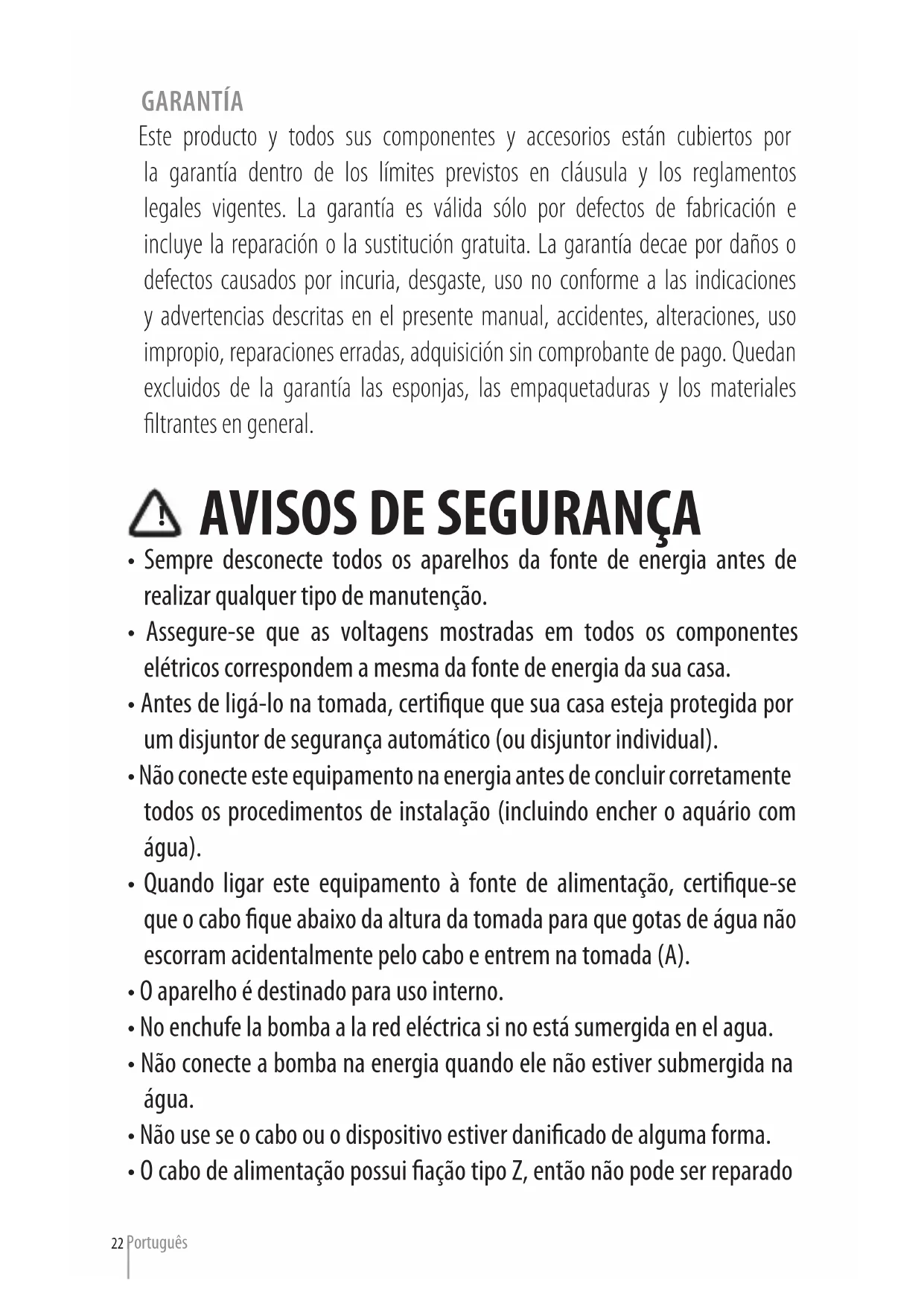 - Não conecte a bomba na energia quando ele não estiver submergida na água.