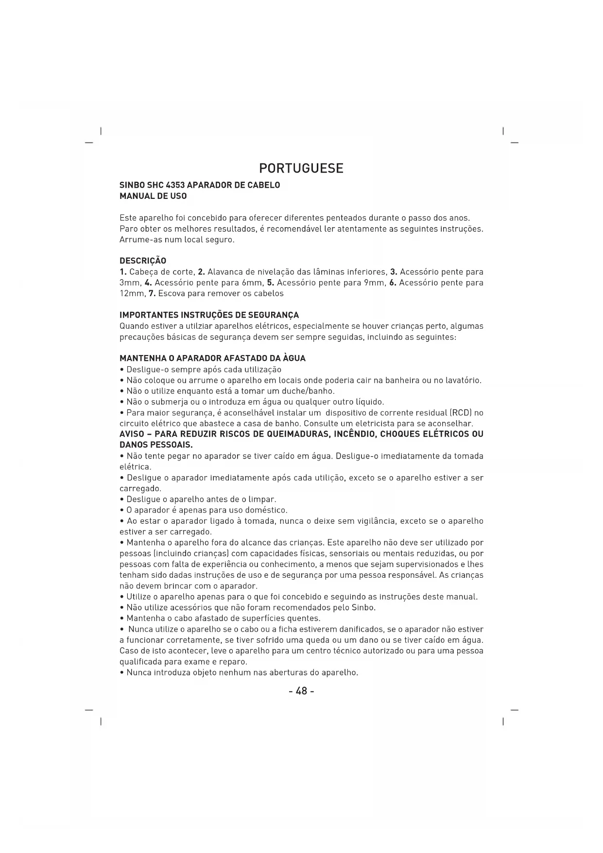 SHC 4353 - Aparador de barba SINBO - Manual de utilização gratuito
