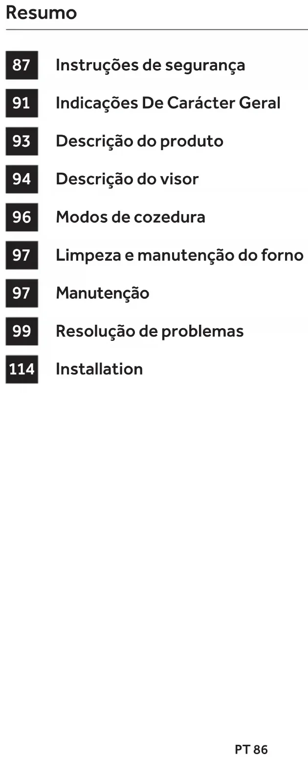 | 87 | Instruções de segurança |