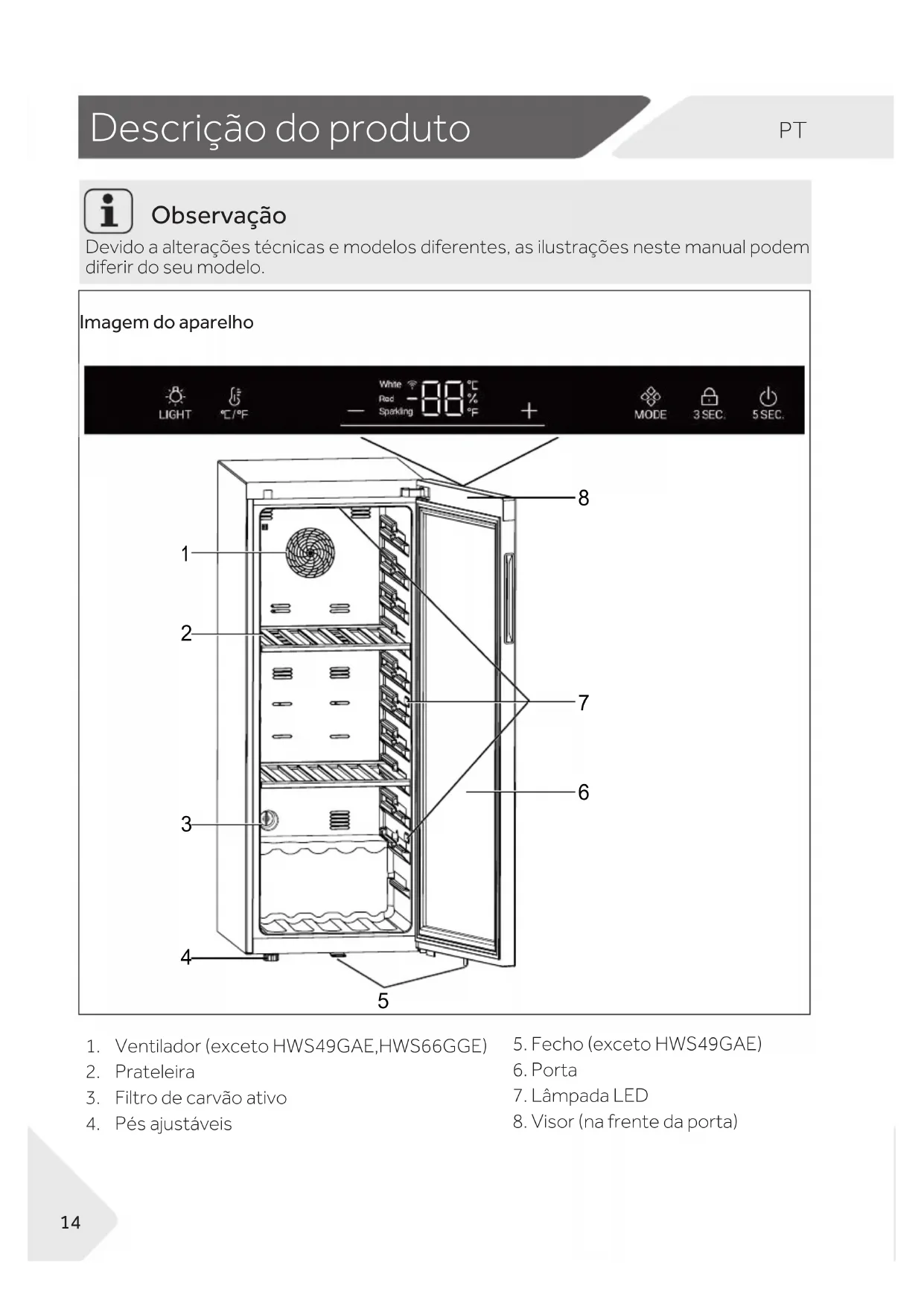 Encontre gratuitamente o manual do aparelho Wine Bank 50 Serie 5 HWS49GA HAIER em formato PDF.