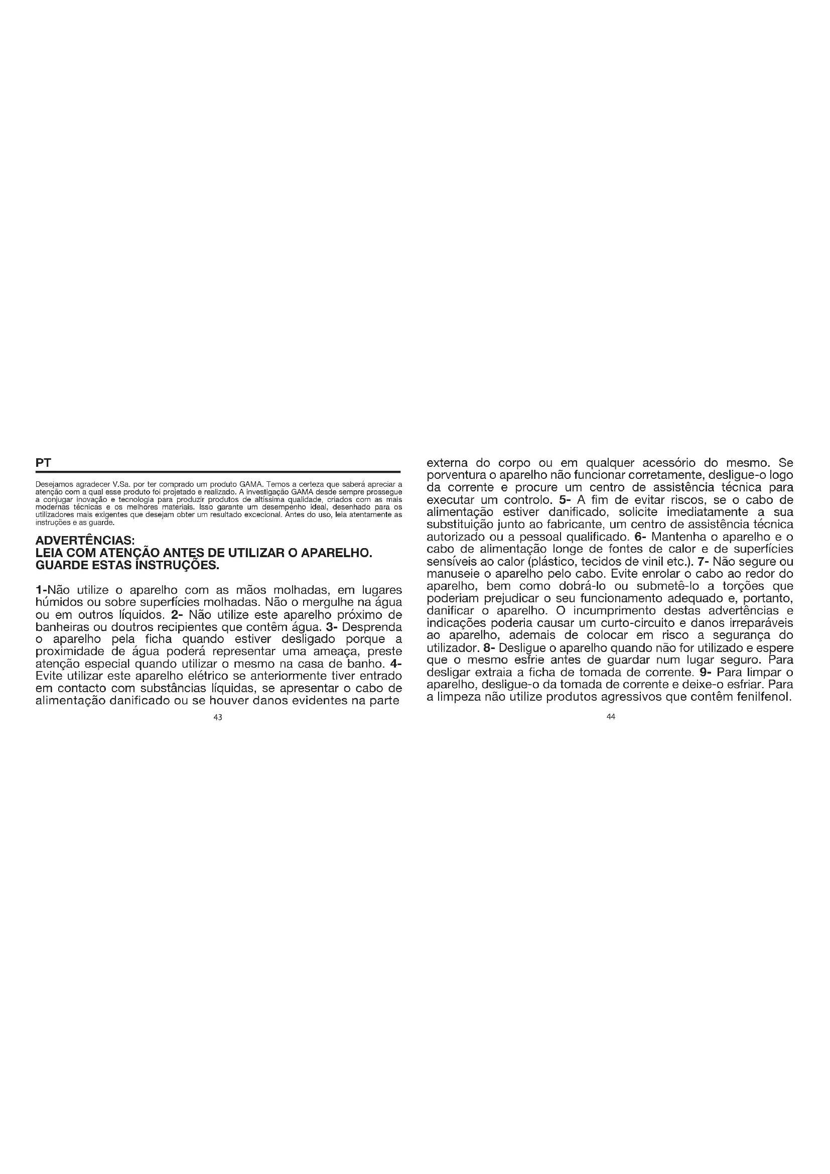 Desejamos agradecer V.Sa. por ter comprado um produit GAMA. Temos a certeza que saberá antesar a atençao com a qualise"Thishofoiprojetadoe realized.AinvestigacaoGAMdesepmesspequegua conjugarInovacao e Tecnologia para produzir Produtos de altissima qualidade,criadosasamais modernas ferricas e os mehlores materiais.IsoGarante um desempinho ideal,desenhado para osutilizadores mais exigentes que desejam obter um resulto exceptional.Antesdo uso,leia atentamente asinuociones e as guarde.