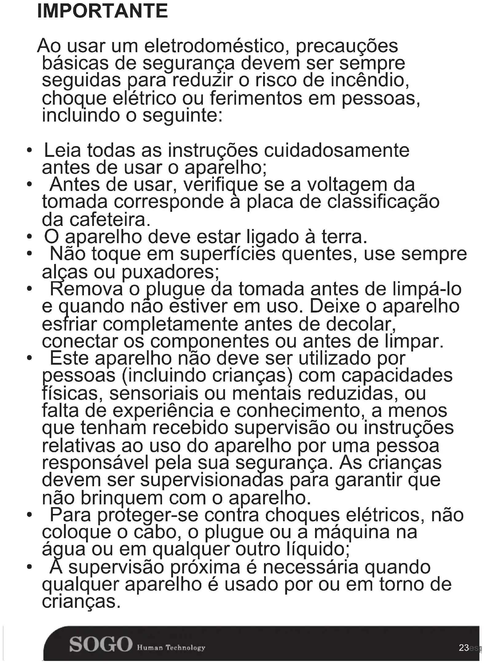 - Antesdeusar,veriqueseavoltagemda tomadacorrespondeàplacadeclassicação da cafeteira.