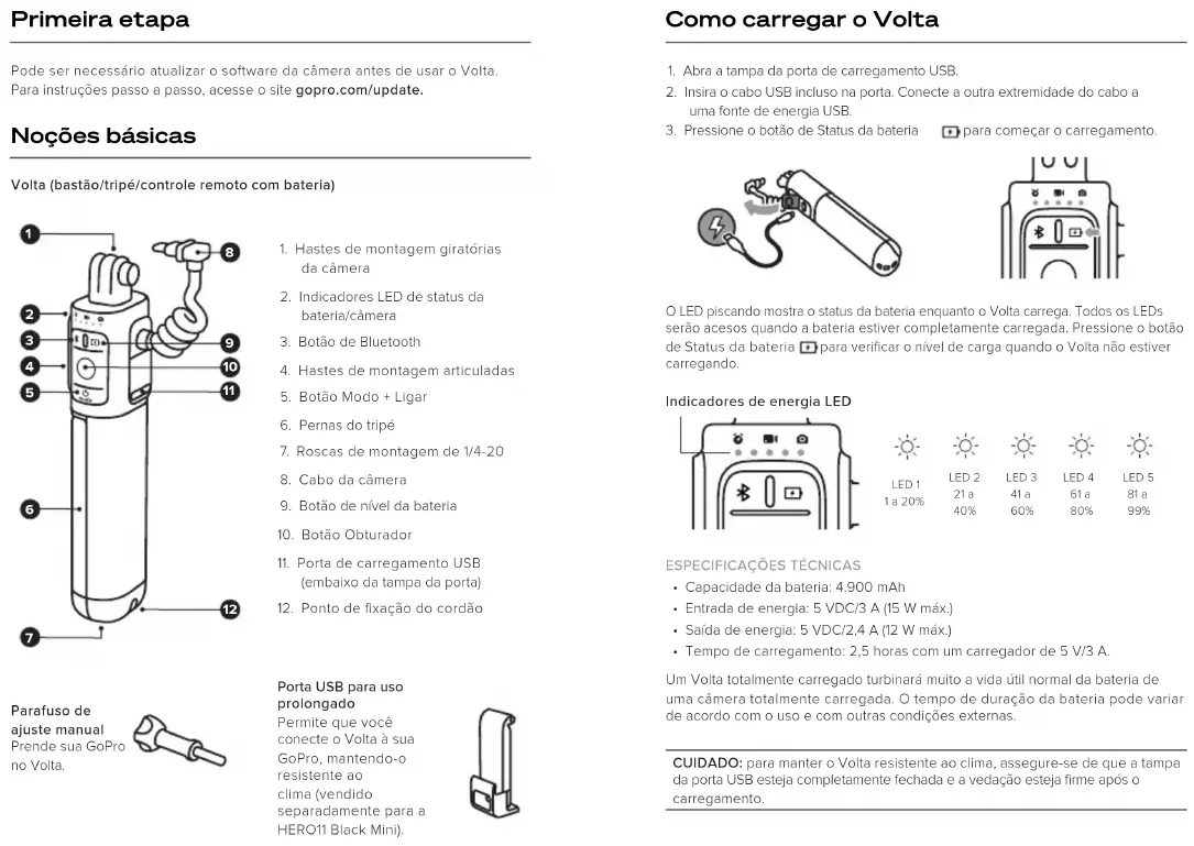 Encontre gratuitamente o manual do aparelho Volta GOPRO em formato PDF.
