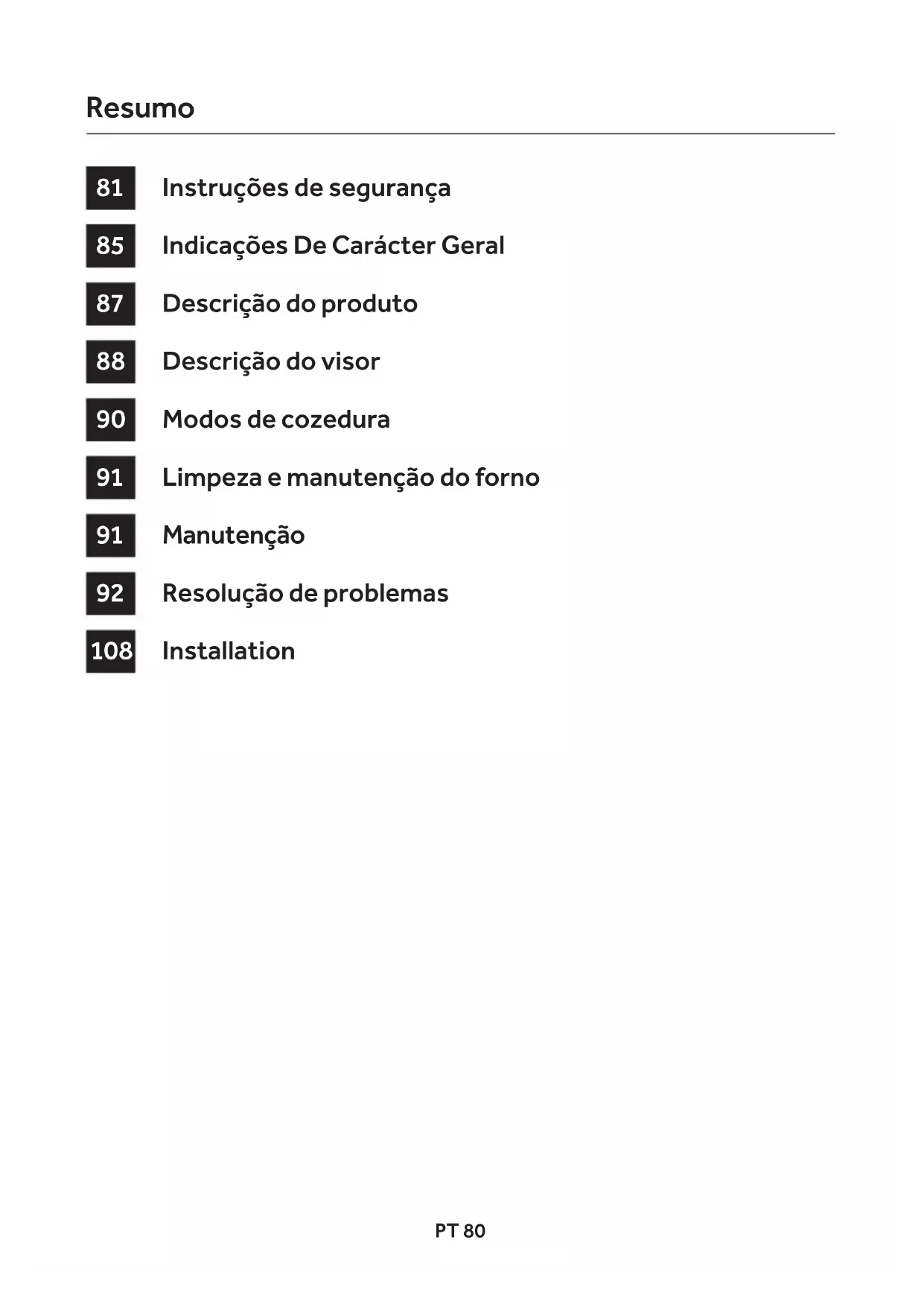 Sempre que possível, evite pré-aquecer o for- no e tente sempre rentabilizá-lo, enchendo-o ao máximo. Abra a porta do forno o menos possível, porque isso faz dispersar o calor. Para uma economia signicativa de energia, desligue o forno entre 5 a 10 minutos antes do tempo de cozedura previsto para a receita e aproveite o calor residual que o forno contin- ua a gerar. Mantenha as borrachas de vedação limpas e funcionais para evitar qualquer dis- persão de calor para fora da cavidade do for- no. Se tem um contrato eléctrico com tarifa bi-horária, utilize o início diferido para começar a cozinhar no horário de tarifa reduzida.TR 93 Güvenlik uyarıları Genel Açıklamalar Ürün açıklaması Gösterge açıklaması Pişirme Modları Fırının Temizlenmesi ve Bakımı Bakım Sorun Giderme Kurulum Özet