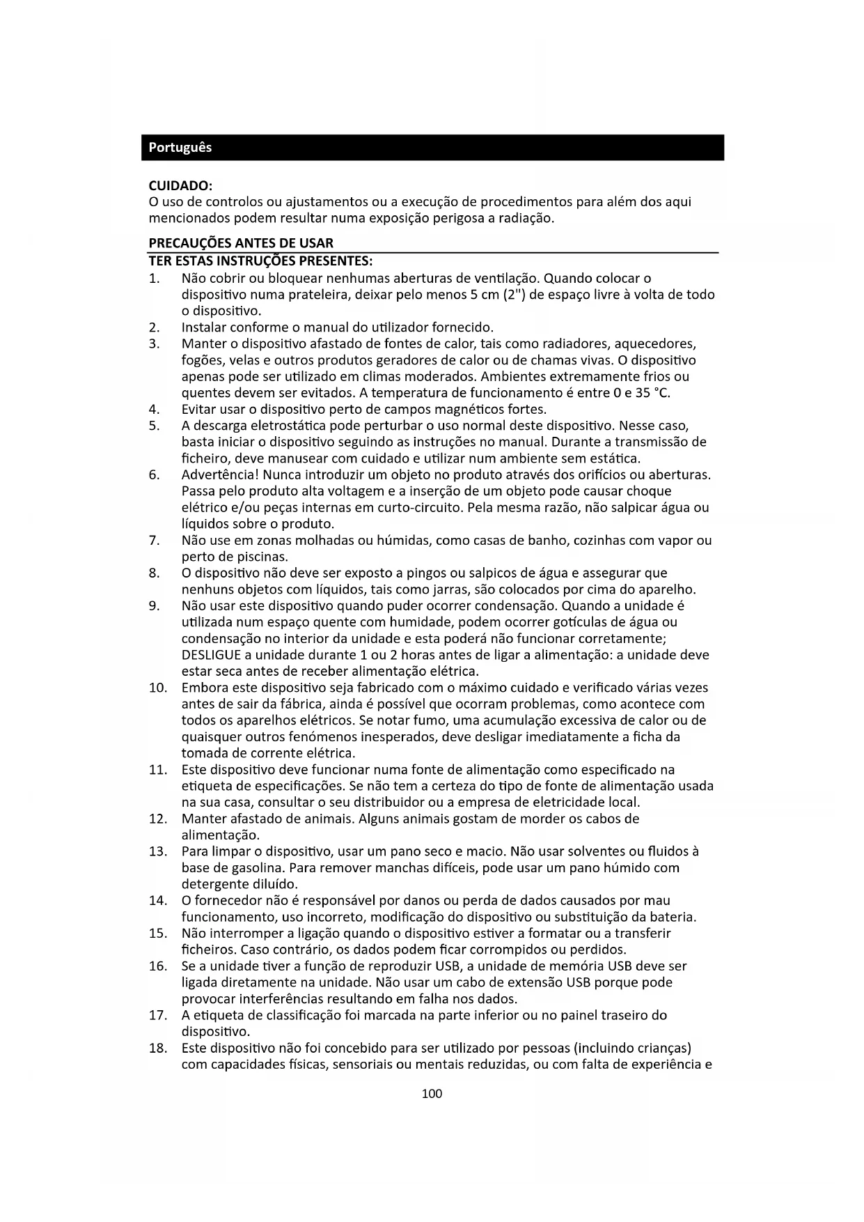 18. Este dispositivo não foi concebido para ser utilizado por pessoas (incluindo crianças)
