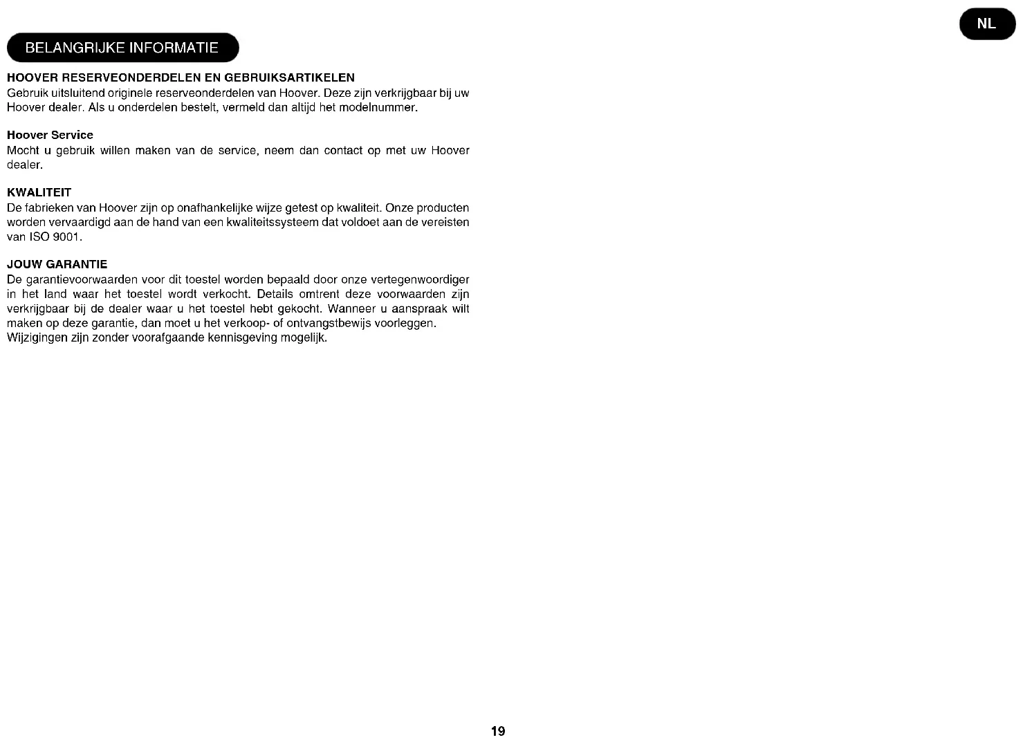 PEÇAS SOBRESSALENTES E CONSUMÍVEIS HOOVER Substitua sempre as peças por peças sobressalentes Hoover genuínas. Pode obtê-las
