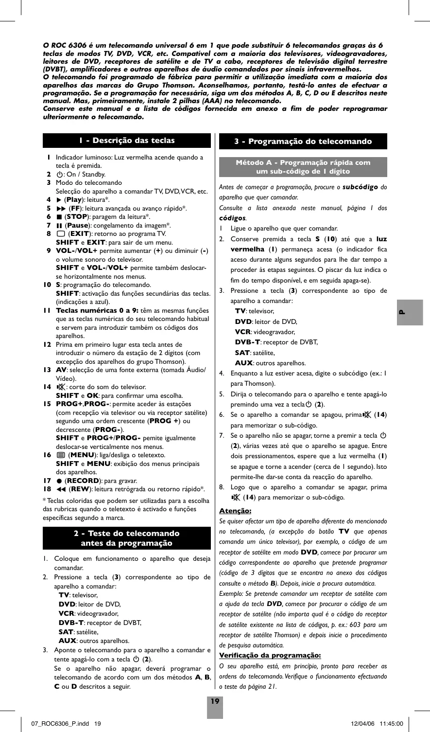 Encontre gratuitamente o manual do aparelho ROC6306 THOMSON em formato PDF.