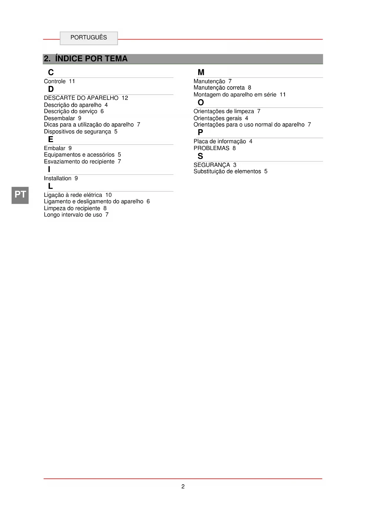 Ligação à rede elétrica 10 Ligamento e desligamento do aparelho 6 Limpeza do recipiente 8 Longo intervalo de uso 7
